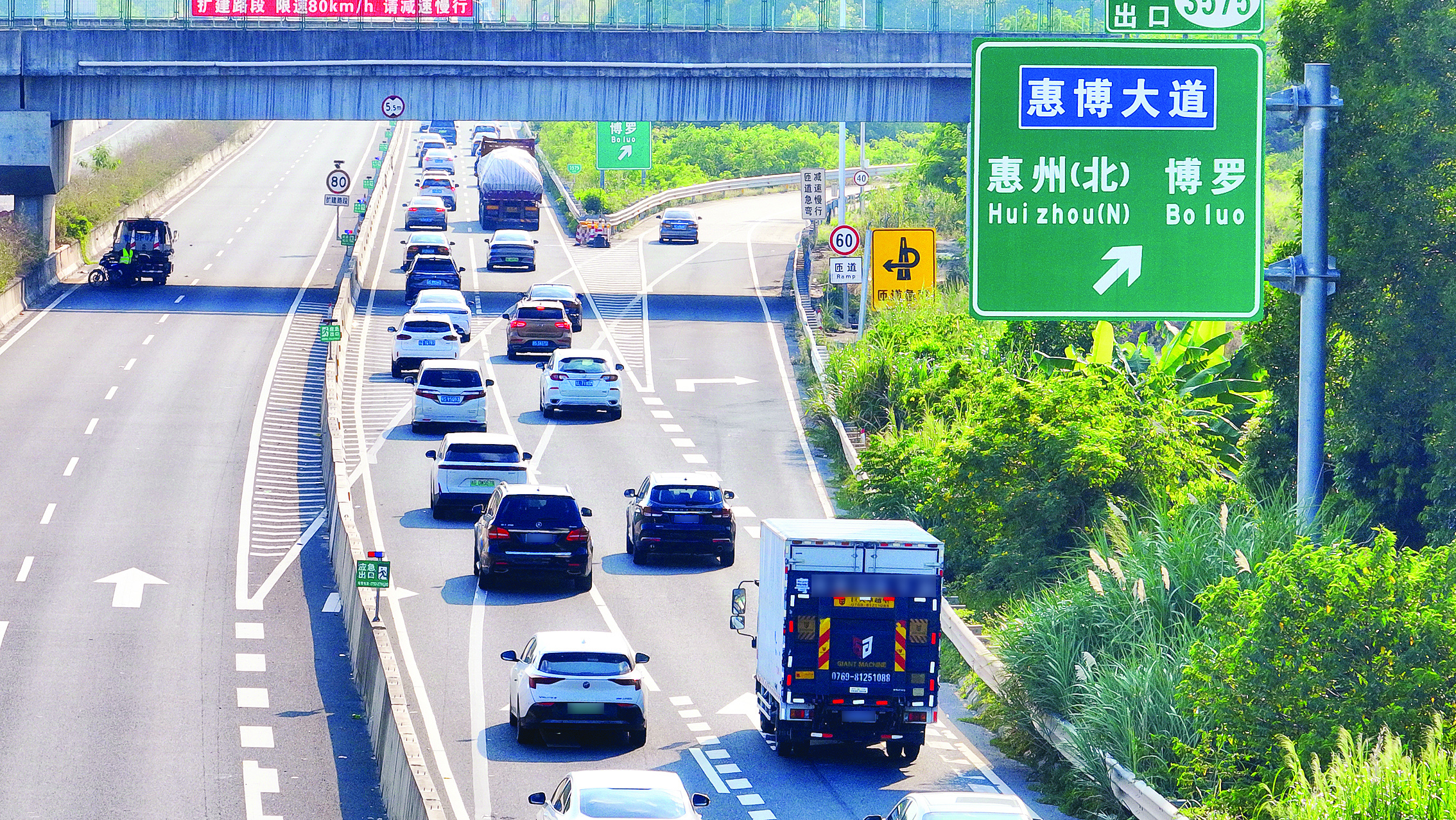 “10月7日(國慶假期最后一天)為高速公路返程擁堵高峰,15時至21時擁堵程度較高!被葜萁痪治稣J(rèn)為,我市返程高峰擁堵風(fēng)險較高的高速路段有甬莞高速良井服務(wù)區(qū)、佰公凹隧道、鎮(zhèn)隆立交及瀝林路段;廣龍高速橫瀝停車區(qū)路段;惠河高速泰美服務(wù)區(qū)路段;深汕高速臨近深圳交界的淡水路段等。