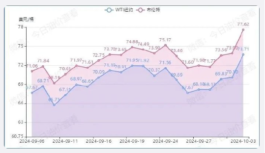 國(guó)際油價(jià)10月3日大幅上漲。截至收盤,紐約商品交易所11月交貨的輕質(zhì)原油期貨價(jià)格收于每桶73.71美元,漲幅為5.15%;12月交貨的倫敦布倫特原油期貨價(jià)格收于每桶77.62美元,漲幅為5.03%。