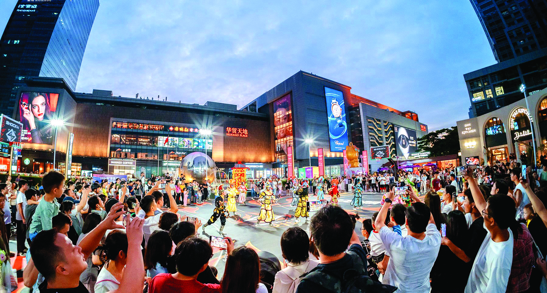 10月3日晚,惠州華貿(mào)天地連續(xù)舉辦3場非遺英歌舞表演,吸引數(shù)千市民圍觀!皣鴳c期間,經(jīng)初步統(tǒng)計測算,華貿(mào)天地客流同比增長26%,銷售額同比提升18%!被葜萑A貿(mào)天地市場企劃總監(jiān)黃宇龍介紹。
