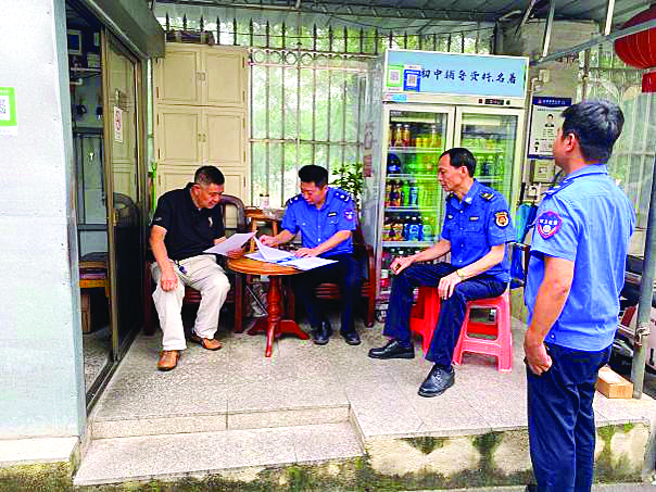環(huán)衛(wèi)所工作人員向商戶宣傳垃圾分類。