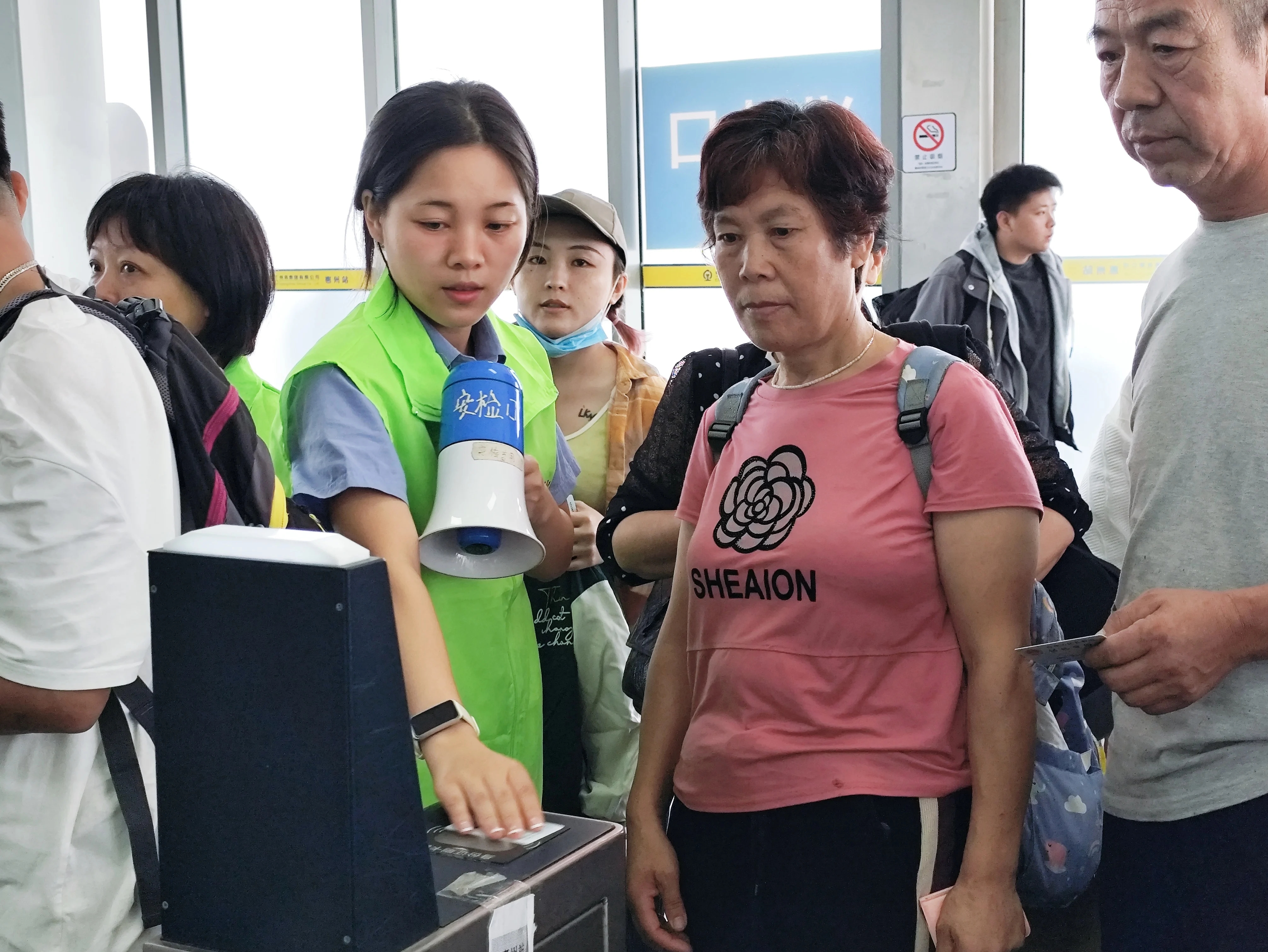 為應(yīng)對(duì)國(guó)慶假期客流高峰,惠州站組織工作人員加強(qiáng)對(duì)設(shè)備設(shè)施運(yùn)行情況的巡檢,合理規(guī)劃旅客進(jìn)站安檢、候車乘降、出站流線,實(shí)現(xiàn)旅客乘降大客流期間無(wú)旅客對(duì)流。在電梯、站臺(tái)、地道等關(guān)鍵崗位增加人員引導(dǎo),維護(hù)旅客乘降秩序。同時(shí),在車站進(jìn)出站口、“惠民服務(wù)崗”一樓大廳等區(qū)域?yàn)槔嫌撞堅(jiān)械戎攸c(diǎn)旅客設(shè)置匯合點(diǎn),為需要幫助的旅客提供咨詢引導(dǎo)、重點(diǎn)幫扶。