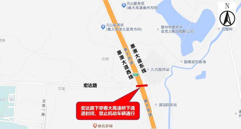 交通管制期間,原從宏達(dá)路-惠大高速橋下通道東西向行駛的車輛,請從惠澳大道/四環(huán)南路交叉口、惠澳大道/泰豪路交叉口掉頭繞行,或通過外圍的演達(dá)大道、葉挺大道等道路繞行。