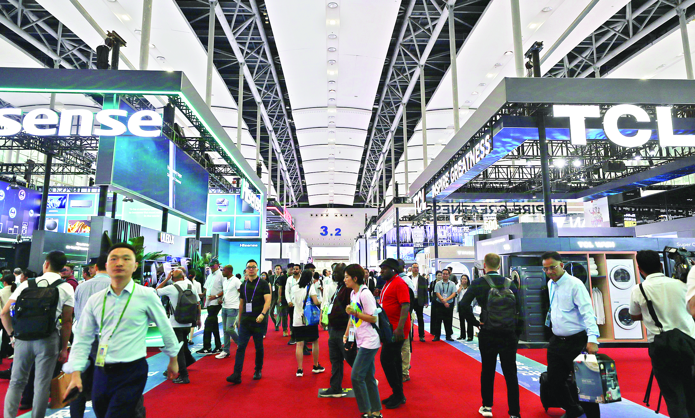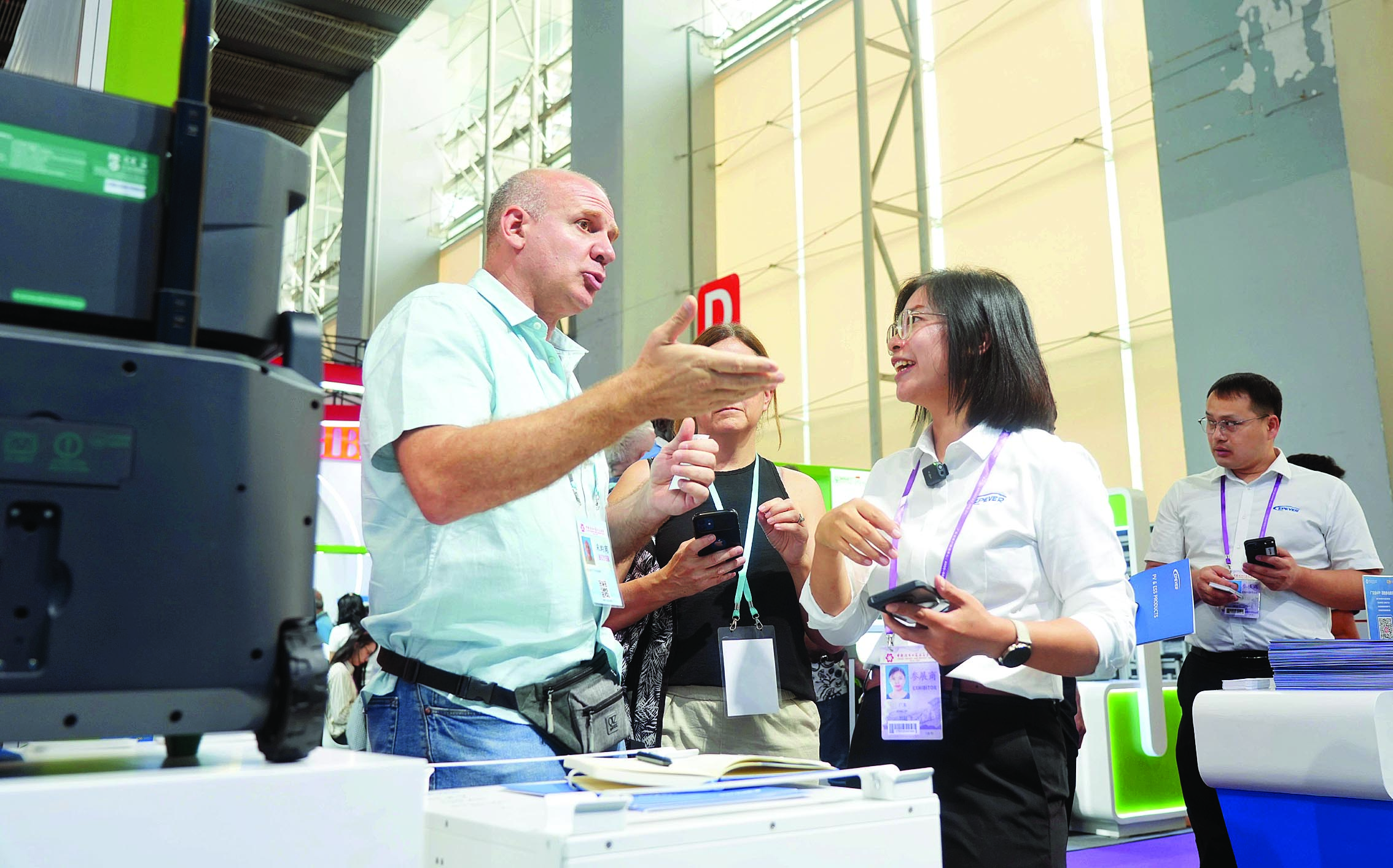 阿根廷采購商在惠州企業(yè)展位洽談;葜萑請笥浾邨罱I(yè) 攝