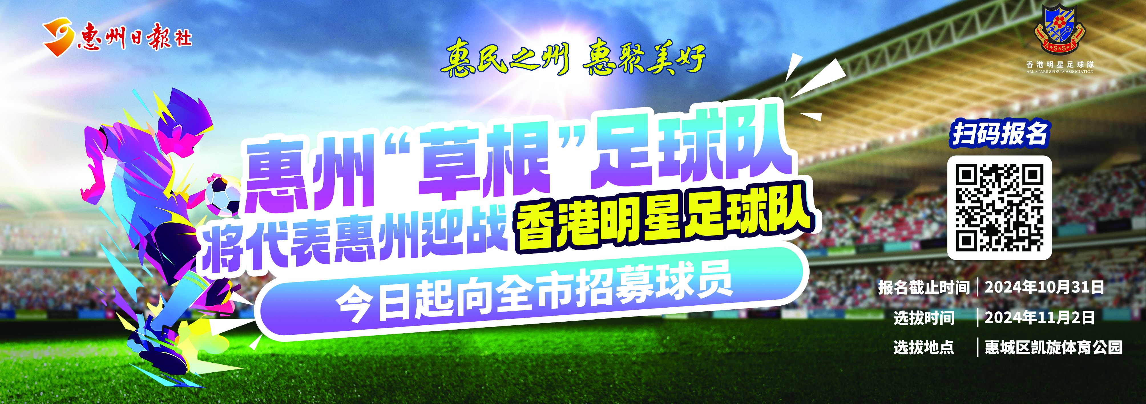 惠州日報訊 (記者龔妍)你熱愛足球嗎?想在綠茵場上綻放光彩嗎?想代表惠州迎戰(zhàn)香港明星足球隊嗎?這些夢想,在香港明星足球隊惠州公益邀請賽都能實現(xiàn)。10月20日,記者從“惠民之州 惠聚美好”香港明星足球隊惠州公益邀請賽組委會獲悉,本次大賽意在打造“普通人圓夢”主題,向惠州廣大足球愛好者廣發(fā)“英雄帖”,選拔“草根”球員組建惠州“草根”足球隊,和香港明星足球隊進行對決。不管你是保安、外賣小哥、廚師,還是建筑工人,不限年齡、職業(yè)、性別,只要你是熱愛足球、擁有一定的足球技能和潛力的非職業(yè)足球運動員,都可以報名參加本次比賽。賽事報名截止時間為10月31日,感興趣的可關注“惠州日報”微信公眾號或掃描二維碼(見下方廣告)報名。