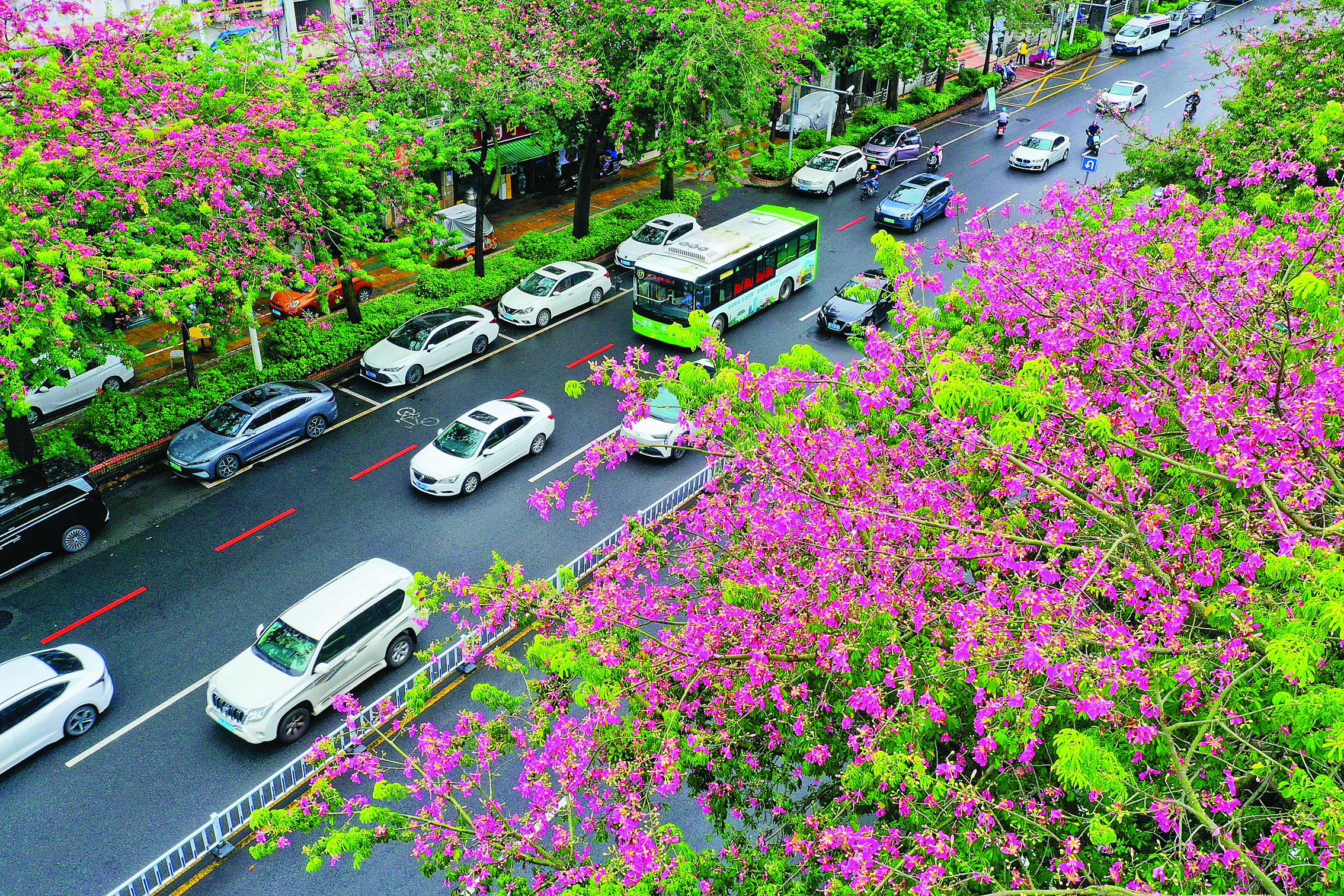 近日來(lái),惠州市區(qū)下角東路道路兩旁,異木棉花競(jìng)相綻放,形成一片粉紅色的花海。一簇簇,婷婷裊裊、婀娜多姿,浪漫了秋天,裝飾了城市。