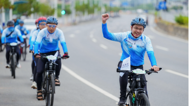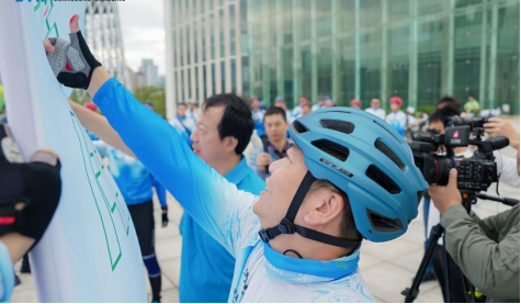 26日和27日,騎行隊伍途經(jīng)惠州大亞灣、巽寮灣等地,這里的美麗鄉(xiāng)村、秀麗海景,給來自大灣區(qū)的騎行隊員們留下深刻印象。頗為壯觀的騎行隊伍魚貫而行,活力向上,也吸引了沿途惠州市民的熱情鼓勵,在中途補給區(qū),不少人還受邀在“集贊大旗”上手工點贊。