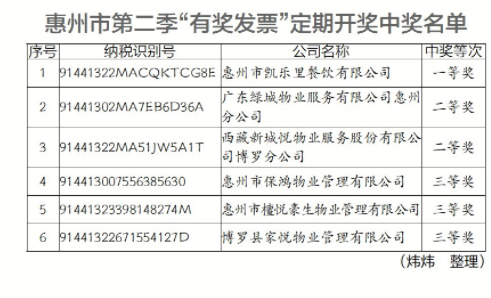 在惠州市陽光公證處工作人員的現(xiàn)場監(jiān)督和廣大市民的共同見證下,惠州市第二季“有獎發(fā)票”定期開獎活動通過搖獎軟件隨機(jī)產(chǎn)生了6戶中獎商家,并由現(xiàn)場觀眾和主持人在6戶中獎商家中依次抽取中獎商家獎項(xiàng)等次。據(jù)介紹,此次開獎共設(shè)3個等次的獎項(xiàng),分別為一等獎5萬元、1名;二等獎2萬元、2名;三等獎1萬元、3名。