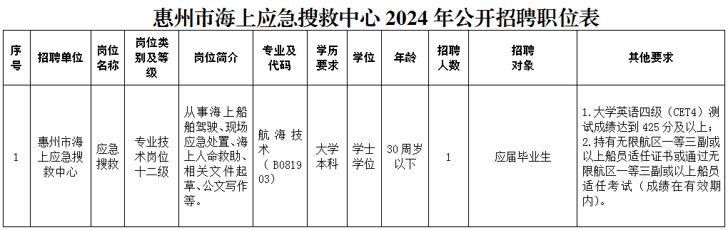 附件:1惠州市海上應(yīng)急搜救中心2024年公開(kāi)招聘職位表.docx