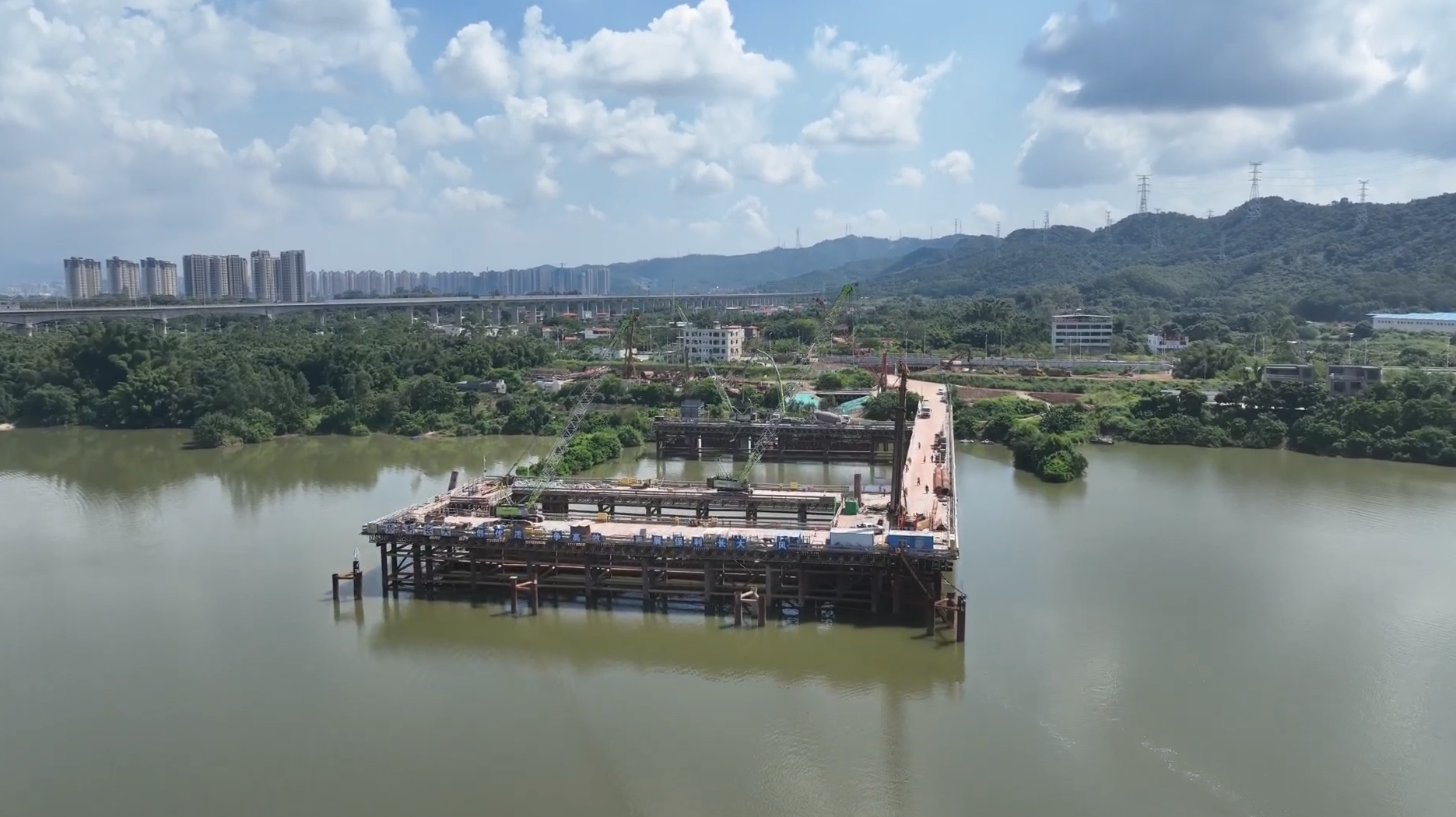 惠肇高速東江特大橋加快建設(shè);菡馗咚夙椖抗﹫D