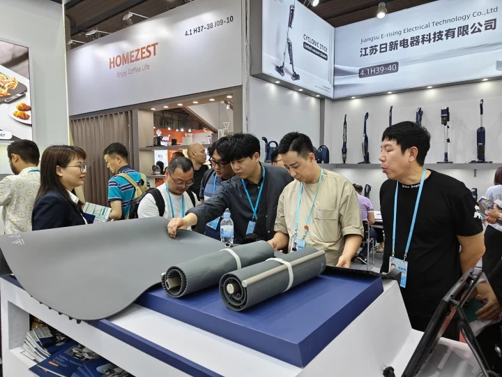 在今年4月舉行的第135屆廣交會上,客商在了解威林科技的柔性暖菜板等創(chuàng)新產(chǎn)品。