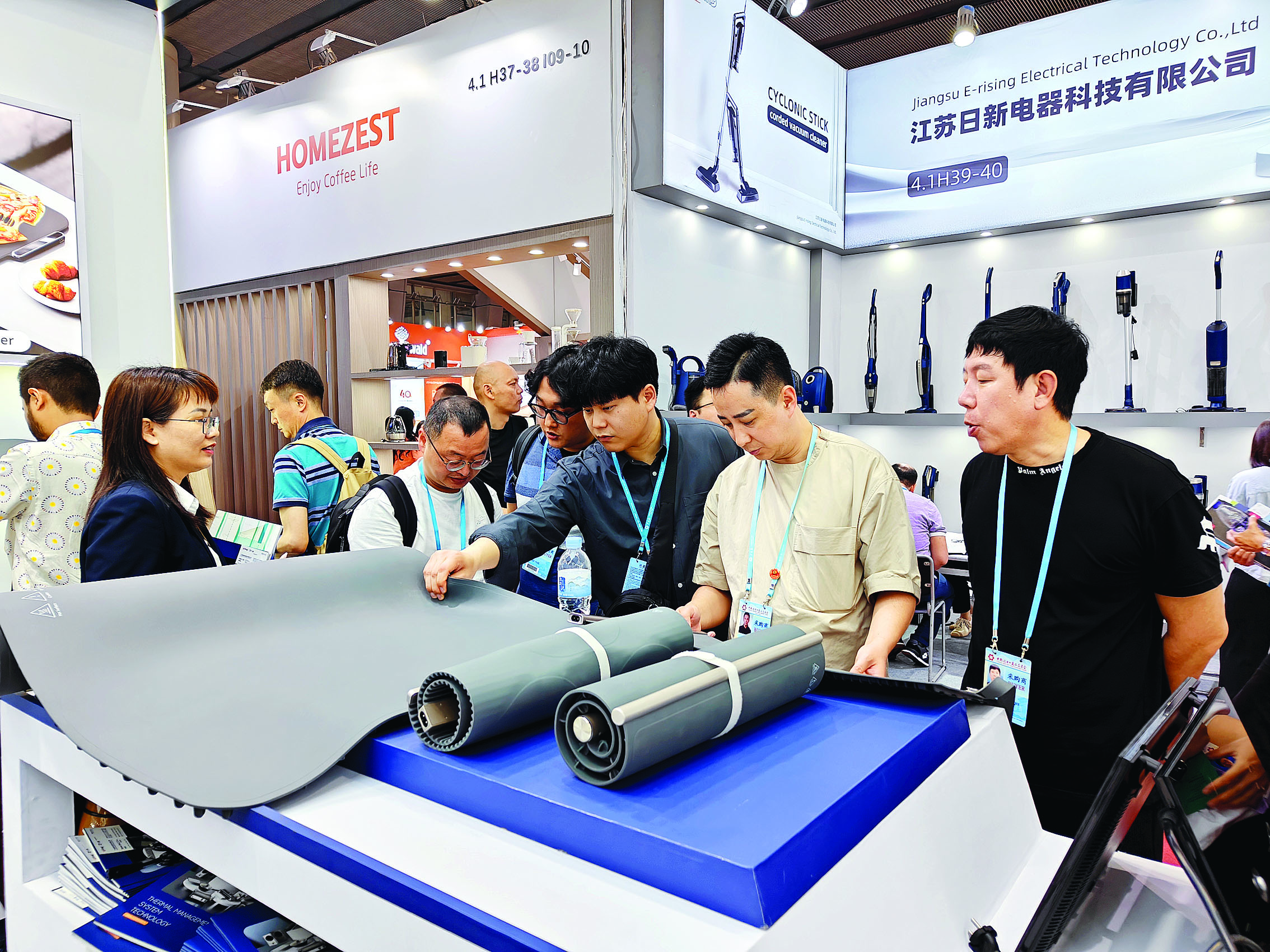 在今年4月舉行的第135屆廣交會(huì)上,客商在了解威林科技的柔性暖菜板等創(chuàng)新產(chǎn)品;葜萑?qǐng)?bào)記者劉煒煒 攝