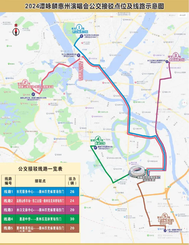 圖2 2024譚詠麟惠州演唱會公交接駁點(diǎn)位及線路示意圖