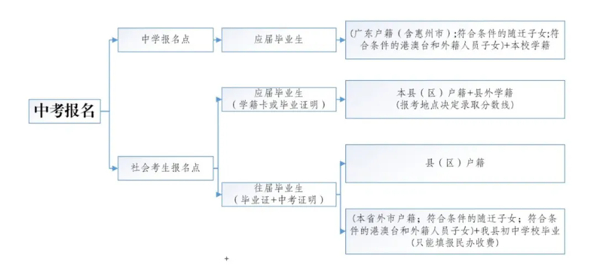 2.非惠州戶籍的往屆畢業(yè)生,在原初中畢業(yè)學(xué)校(以廣東省九年義務(wù)教育證書為準(zhǔn))所在縣(區(qū))教育局所設(shè)立的社會考生報名點報考。