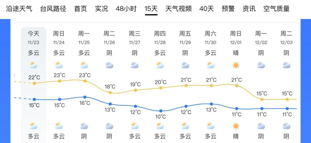 24日,天氣總體還不錯(cuò),白天氣溫小小回升,正是不冷不熱的舒適季節(jié),大部地區(qū)多云有陽光,中西部云量較多,有點(diǎn)分散小雨,但對(duì)戶外徒步郊游等影響不大。