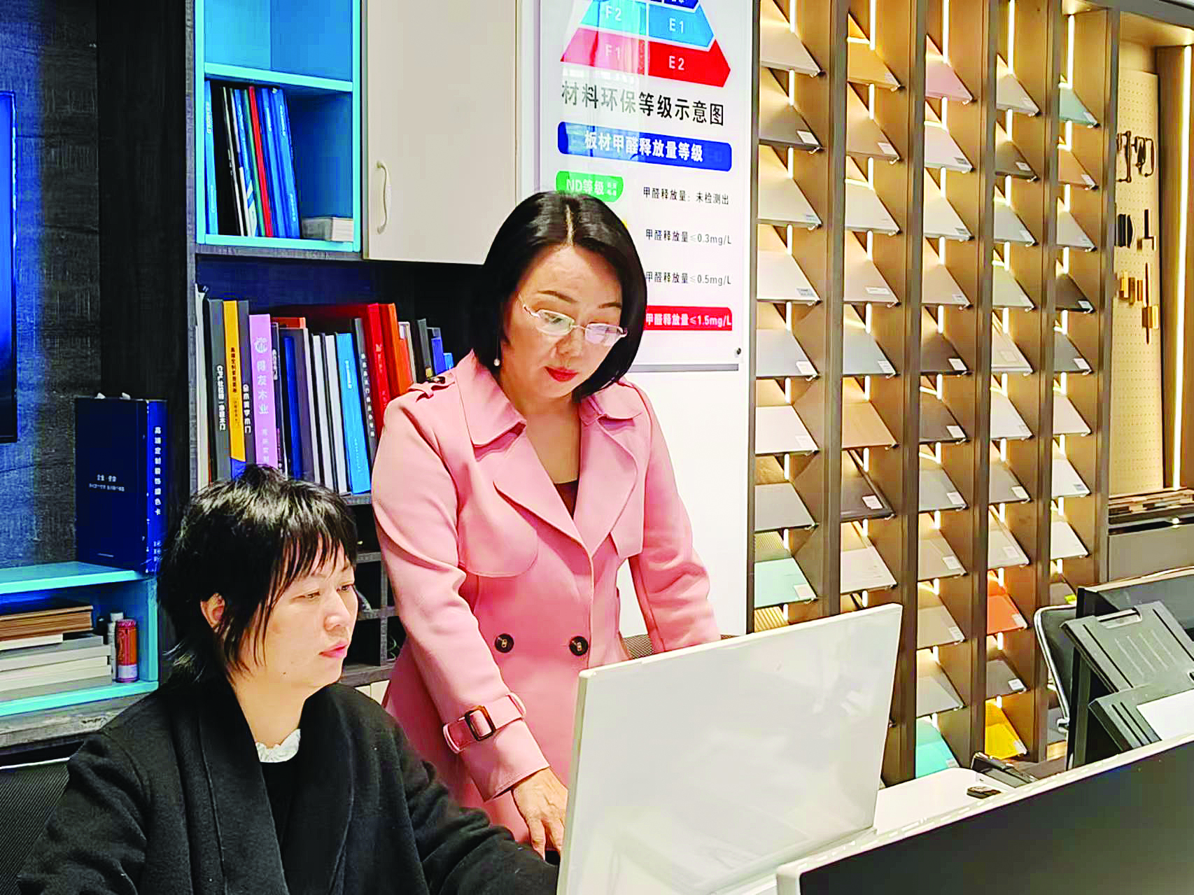 黎小演(右)和員工一起工作。