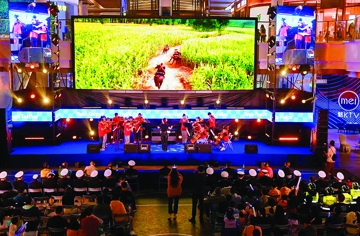 惠州交警民警參與獻唱的《中國人》及《禮贊斑馬線》,聲情并茂地傳遞著公安交警的愛國情懷與守護平安的信念,贏得了現(xiàn)場群眾的陣陣掌聲。影視明星周也通過視頻發(fā)出呼吁,希望大家關注交通安全,攜手共創(chuàng)文明交通。
