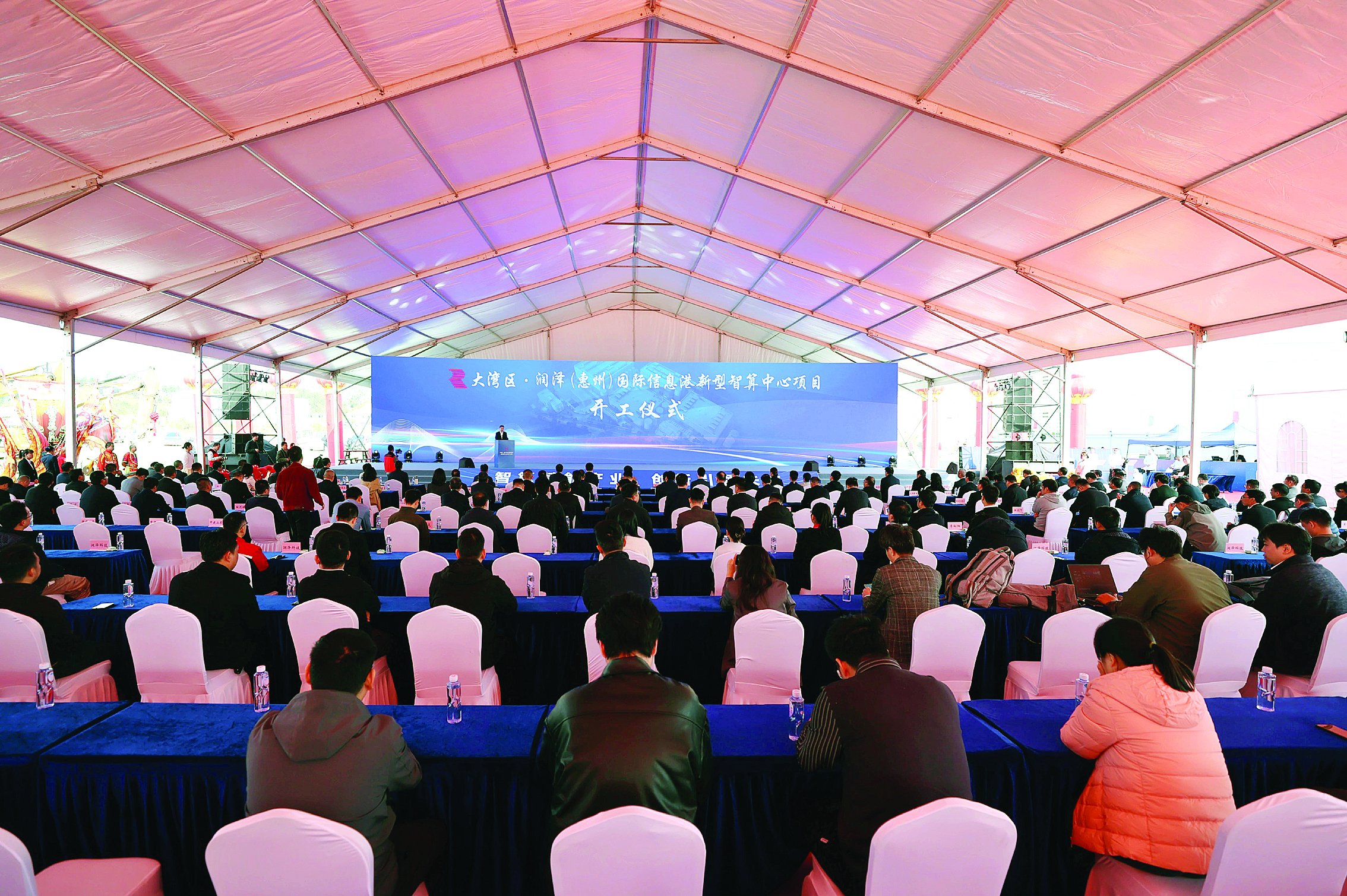 潤(rùn)澤(惠州)國際信息港新型智算中心項(xiàng)目開工儀式現(xiàn)場(chǎng)。 惠州日?qǐng)?bào)記者楊建業(yè) 黃鑫威 哈鵬 攝