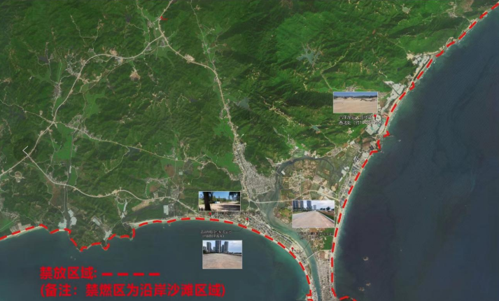 惠東雙月灣沙灘禁放區(qū)域、可燃放時(shí)間為:
