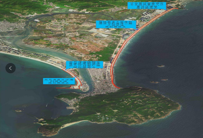 。ǘ└劭跒I海旅游度假區(qū)劃定東山海和沙咀尾靠近沙灘沙浦地附近劃定4個(gè)空曠沙灘區(qū)域(日出銀沙鹽晶酒店牛頭嶺風(fēng)景區(qū)入口靠近沙浦地區(qū)域;檀悅都喜天麗度假酒店與虹海灣二期之間空地;雙月灣溫德姆至尊豪庭度假酒店出入口對(duì)面廣場;雙月灣落日沙灘P2停車場對(duì)出沙浦地區(qū)域)定為限時(shí)可燃放區(qū),將18時(shí)至22時(shí)規(guī)定為可燃放時(shí)間(紅色區(qū)域?yàn)榻挤秶?/p>