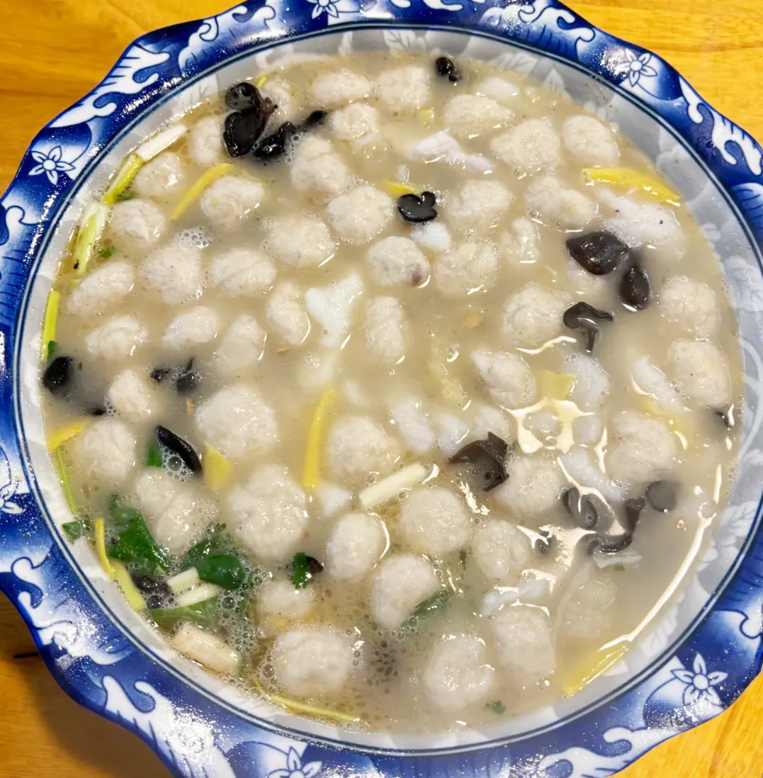 漂湯魚丸是微山湖區(qū)的傳統(tǒng)名菜之一,不僅口感鮮美,還具有豐富的營養(yǎng)價(jià)值。將魚肉制作成細(xì)膩的魚丸,魚丸呈乳白色,大小如白果,白色的魚丸漂在湯中,再撒上點(diǎn)蒜苗、香菜,色香味俱佳,一湯在桌,滿廳清香。