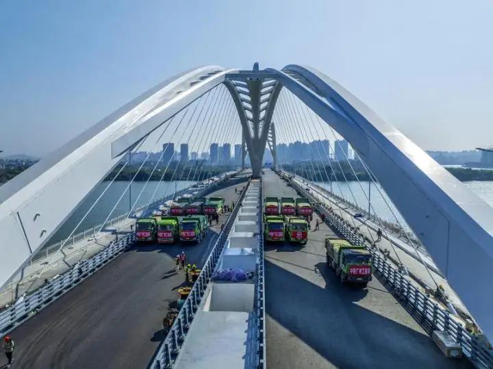 中鐵廣州工程局項(xiàng)目負(fù)責(zé)人介紹,經(jīng)過(guò)測(cè)試以及對(duì)荷載試驗(yàn)數(shù)據(jù)進(jìn)行分析,鵝城大橋各項(xiàng)指標(biāo)均滿足設(shè)計(jì)要求,橋梁與設(shè)計(jì)及規(guī)范要求相吻合,大橋響應(yīng)正常、狀態(tài)良好,具備良好的承載能力和穩(wěn)定性。