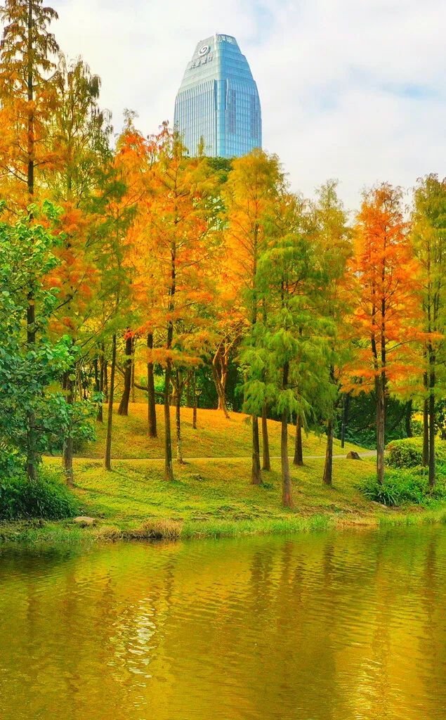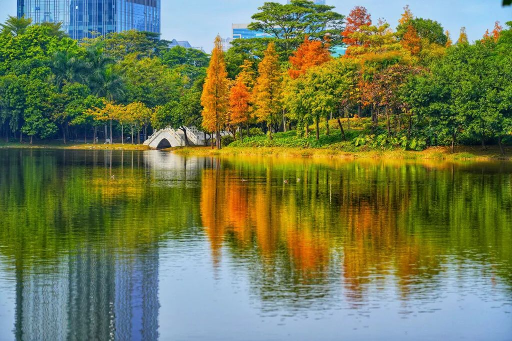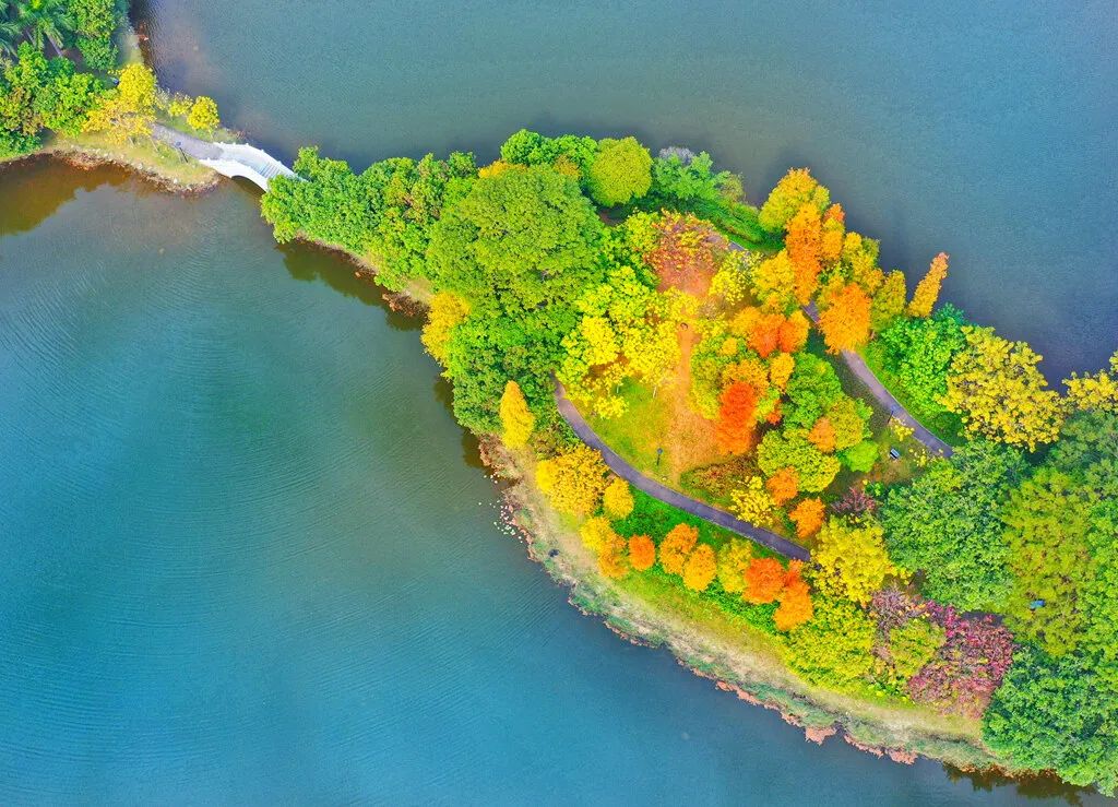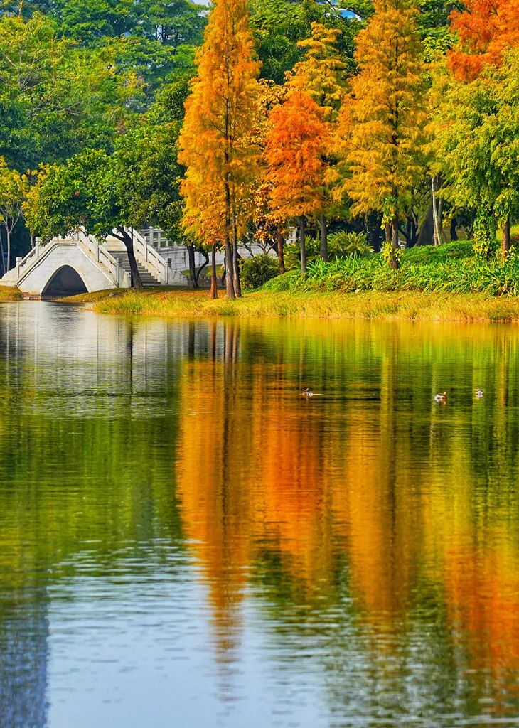北湖公園近日,惠州的落羽杉迎來(lái)了紅葉期,