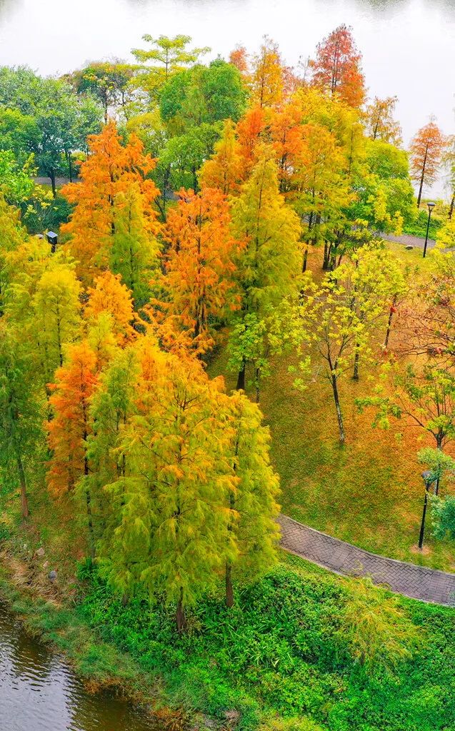 一大片紅黃交織的落羽杉美成畫來(lái)!