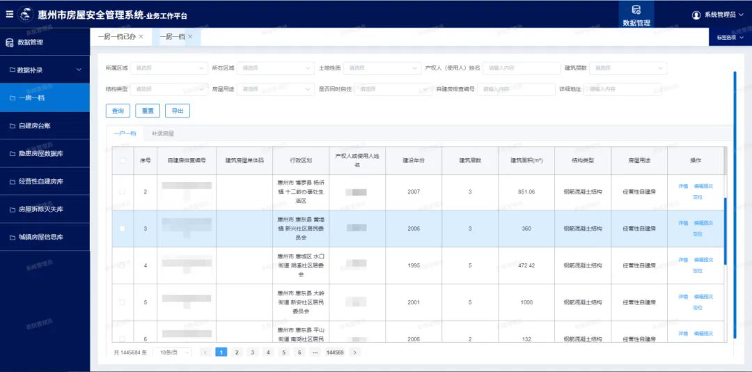 惠州市房屋安全管理系統(tǒng)是面向全市的監(jiān)管平臺(tái),可實(shí)現(xiàn)市、縣(區(qū))、鄉(xiāng)鎮(zhèn)、村多級(jí)聯(lián)動(dòng)一屏監(jiān)管,可方便各級(jí)政府部門全面掌握所轄區(qū)域自建房建設(shè)、安全、危房等情況。