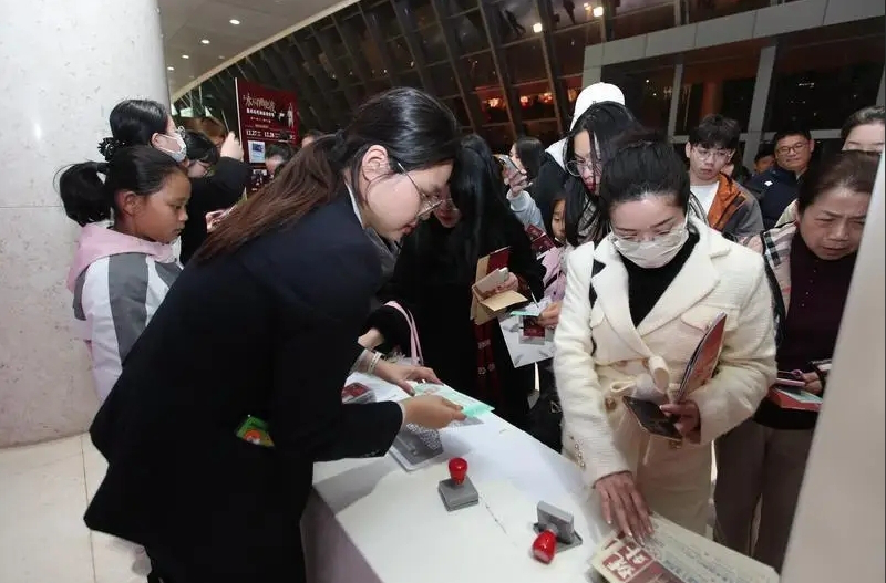 舞劇《永不消逝的電波》開場前,觀眾前往蓋章打卡;輬笕襟w記者鐘暢新 攝