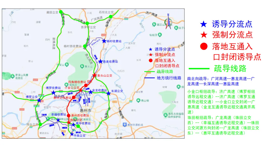長深高速惠州北往深圳、河源方向車輛可通過小金河大道繞行廣惠高速金龍互通通行;