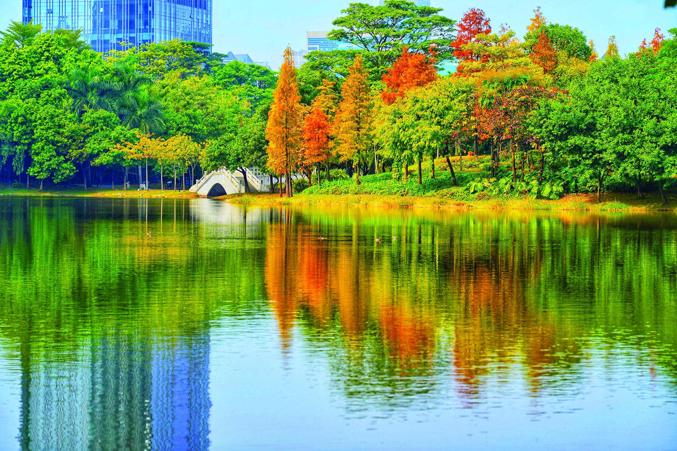 近日,位于市區(qū)江北北湖公園的落羽杉迎來了紅葉期。湖畔的落羽杉一團(tuán)團(tuán)、一簇簇,與水中倒影交相輝映,組成夢幻般的色彩,讓冬日的惠州別有一番風(fēng)采,吸引游客紛紛前來打卡拍照。