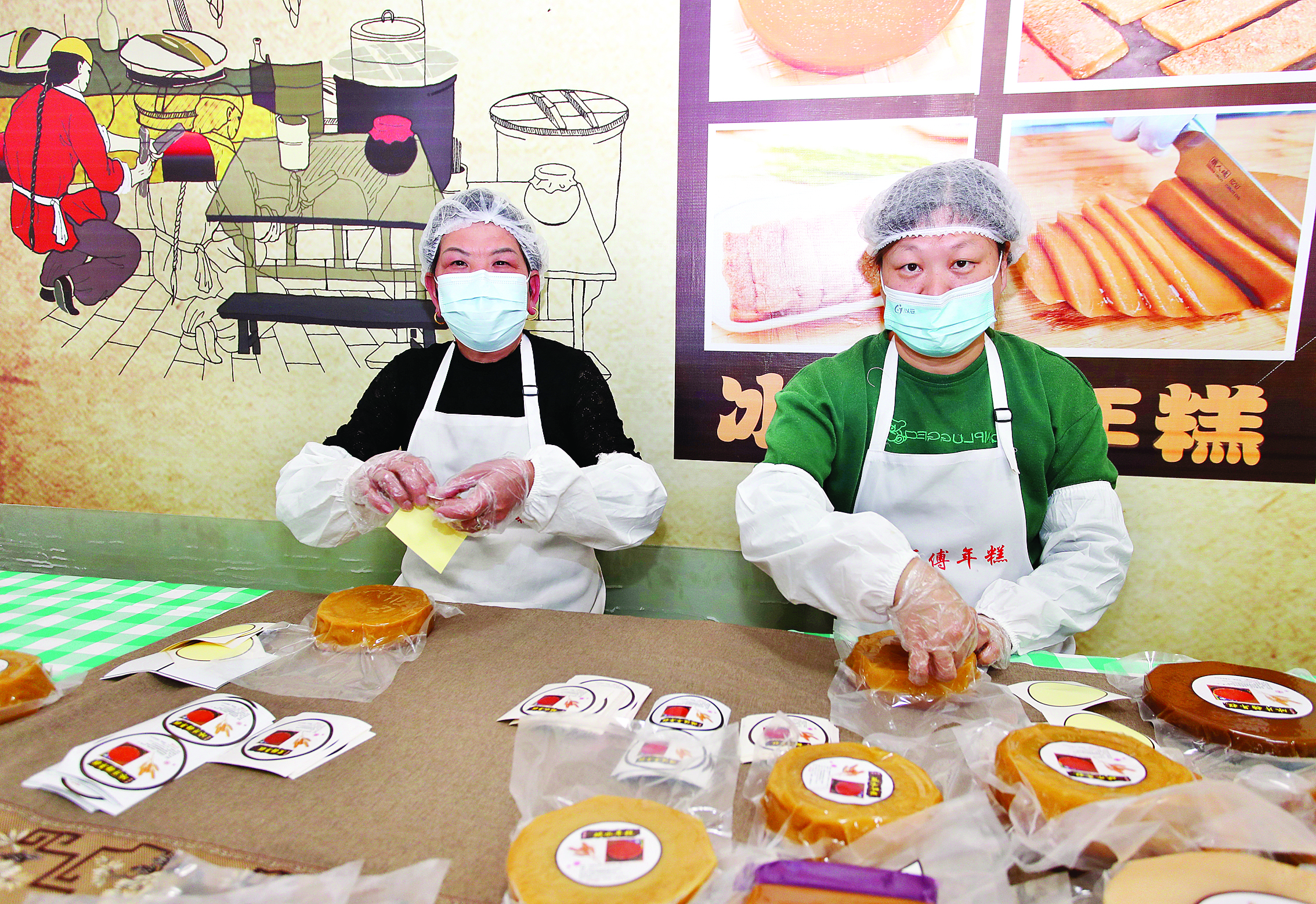 工坊負(fù)責(zé)人黃文深和妻子一起做年糕;葜萑請笥浾哏姇承 攝