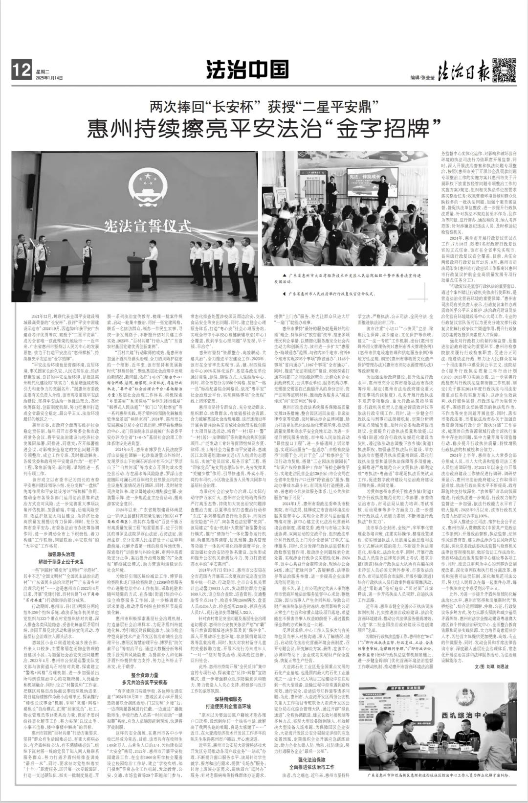 在法治中國(guó)欄目整版刊發(fā)文章《惠州持續(xù)擦亮平安法治“金字招牌”》