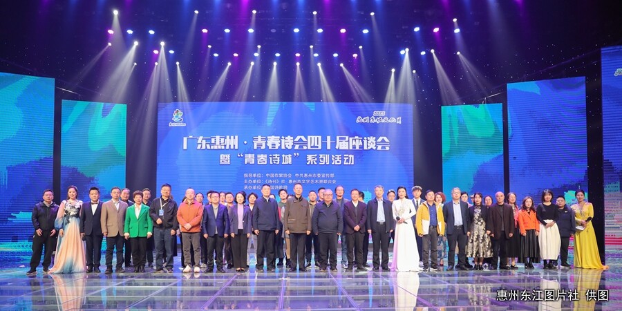 1月13日晚,青春詩會四十屆座談會暨“青春詩城”系列活動之“永遠(yuǎn)的青春”詩歌朗誦會舉行,吉狄馬加、王山、楊克等參會詩人現(xiàn)場吟誦自己創(chuàng)作的青春詩篇,惠州本地專業(yè)主持人、朗誦家也共同參與朗誦“青春詩會”走出的著名詩人的經(jīng)典名篇。朗誦會輔以音樂等形式,融合新媒體技術(shù),呈現(xiàn)出詩樂相配的精彩畫面,給觀眾帶來審美愉悅和心靈震撼。