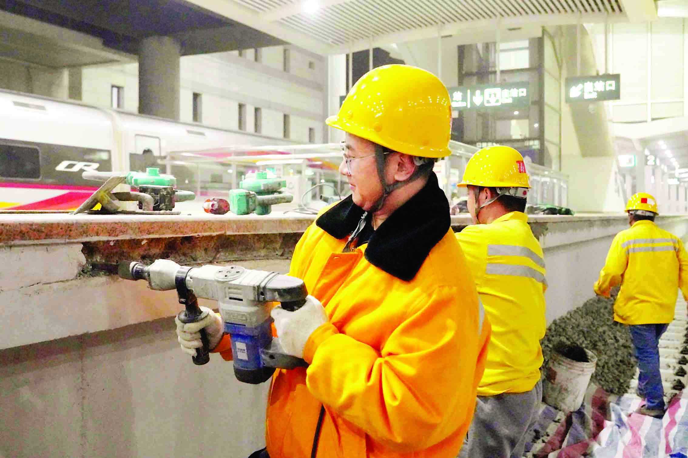 “春運開始了,整治后的站臺更安全,更方便,為旅客溫馨舒適出行提供有力保障!被葜荼备哞F房建車間黨支部書記鐘育平說。