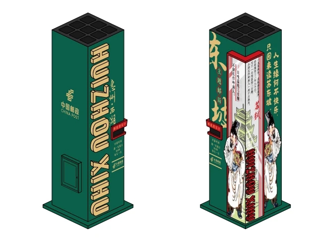 東坡主題郵局提取宋代建筑和東坡文化元素,結(jié)合西湖景觀,融合郵文化元素,并選取當(dāng)代著名畫家劉克寧老師《問(wèn)墨蘇東坡》畫作進(jìn)行設(shè)計(jì)建造,連主題郵局的郵筒設(shè)計(jì)都別具特色,讓人驚艷!游客不僅可以在東坡郵局寄出給親人朋友的明信片,還可在游西湖時(shí)欣賞東坡郵局背面的燈光透視圖——《問(wèn)墨蘇東坡》精美畫作;葜輺|坡郵局將成為西湖景區(qū)文化、東坡文化和城市文化的全新展示窗口。