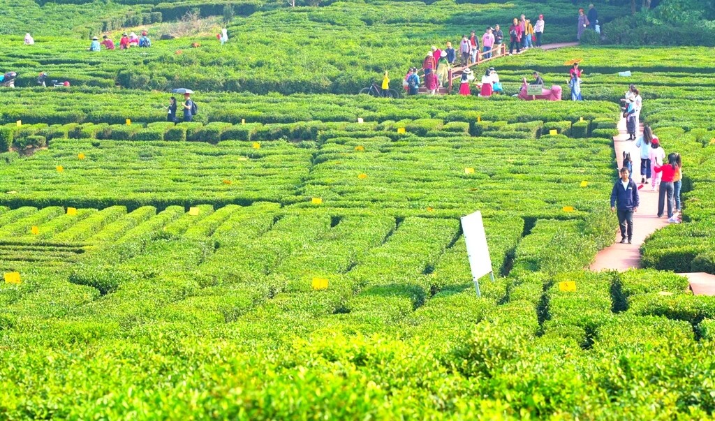 羅浮山下的柏塘萬畝茶園吸引眾多游人打卡。