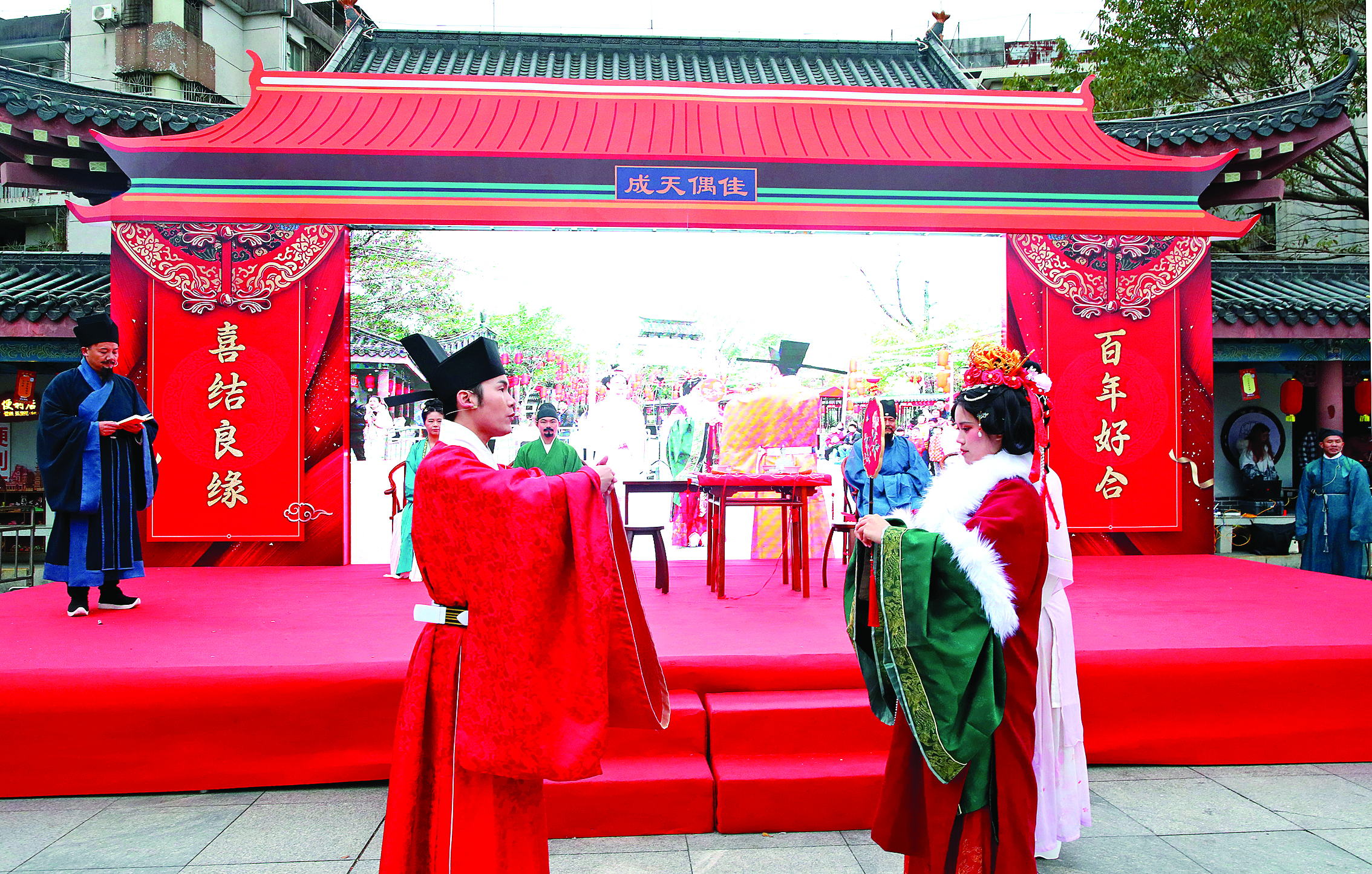 2024年2月10日,大年初一在豐湖書院上演的“宋式婚禮秀”讓市民游客感受國風式浪漫;葜萑請笥浾哏姇承聰z