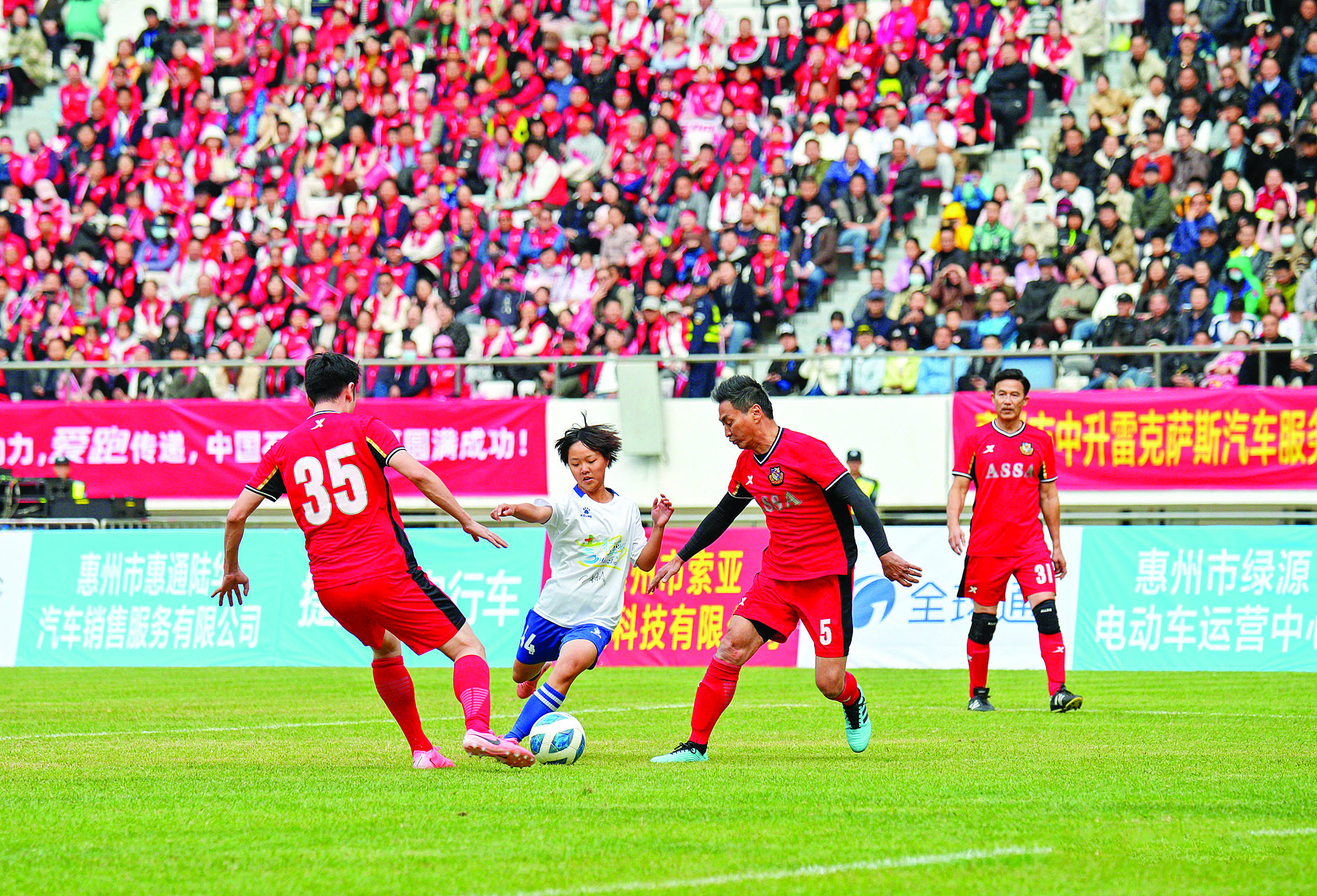 2024年12月15日,“惠民之州 惠聚美好”香港明星足球隊惠州公益邀請賽為球迷獻上了一場精彩紛呈的賽事;葜輺|江圖片社供圖