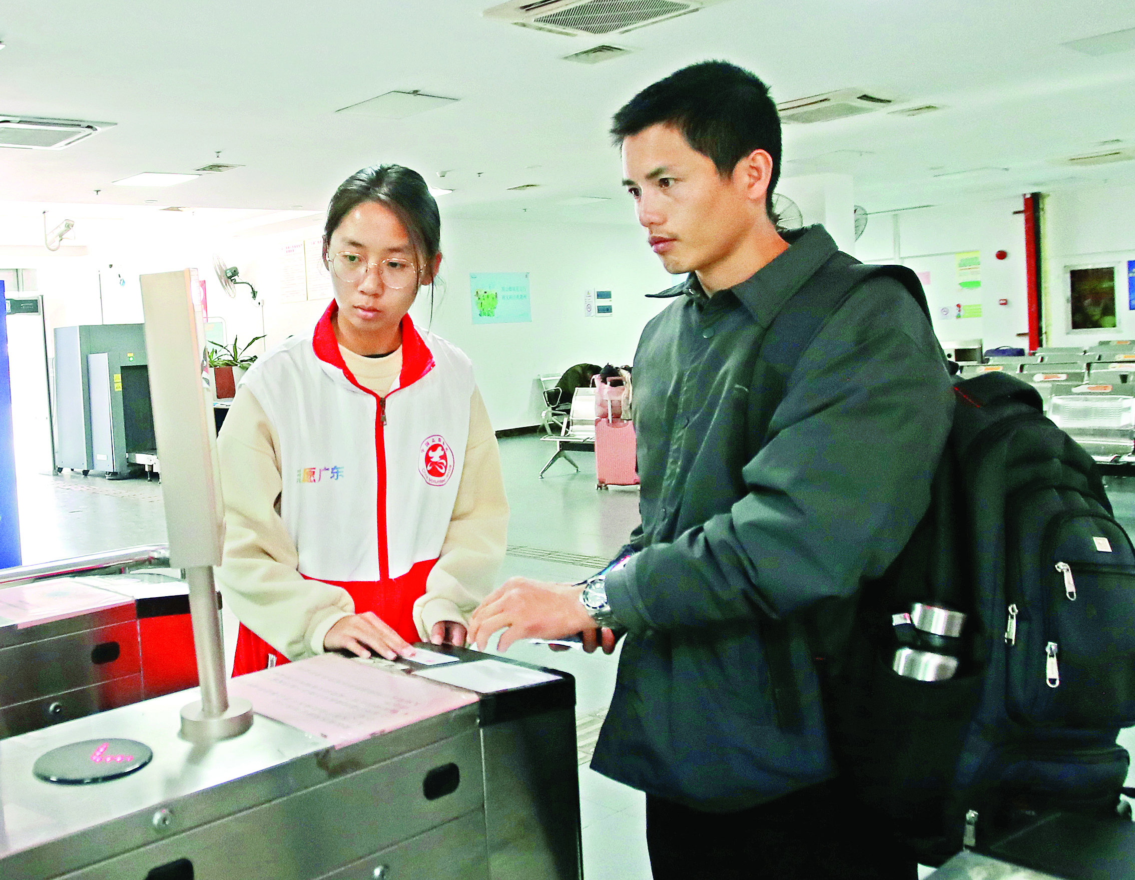 回家前,趁著候車的間隙,先把自己拾掇拾掇,相見那一刻,光彩照人的你,也許就能讓親人更安心了;站臺(tái)邊,匆匆吃過簡單的盒飯,下一頓就是媽媽張羅的那桌熱騰騰的飯菜;站場里,工作人員有序開展身份驗(yàn)證、行李安檢、進(jìn)出站驗(yàn)票等工作,讓旅客感覺更安穩(wěn);各個(gè)點(diǎn)位,忙碌的志愿者為旅客提供乘車指引、行李搬運(yùn)等志愿服務(wù),溫暖的感覺涌上心頭……