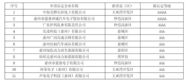 據(jù)了解,本次認(rèn)定采取各企業(yè)自愿報(bào)名參加、各縣(區(qū))初評(píng)推薦、資料審核、現(xiàn)場考核認(rèn)定、聯(lián)合認(rèn)定的方法和步驟組織實(shí)施。全市共21家企業(yè)報(bào)名,經(jīng)審核認(rèn)定及企業(yè)守法征信查詢,最終11家企業(yè)符合認(rèn)定標(biāo)準(zhǔn)。其中:5A級(jí)2家、4A級(jí)1家、3A級(jí)8家。