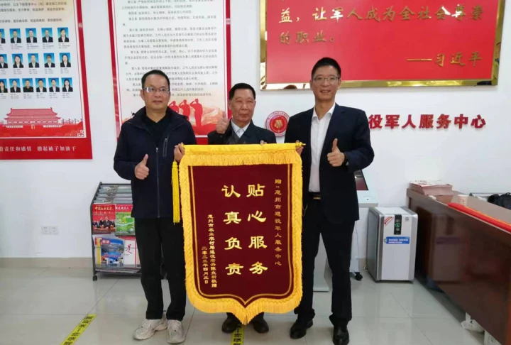 退役軍人向惠州市退役軍人服務(wù)中心贈送錦旗。