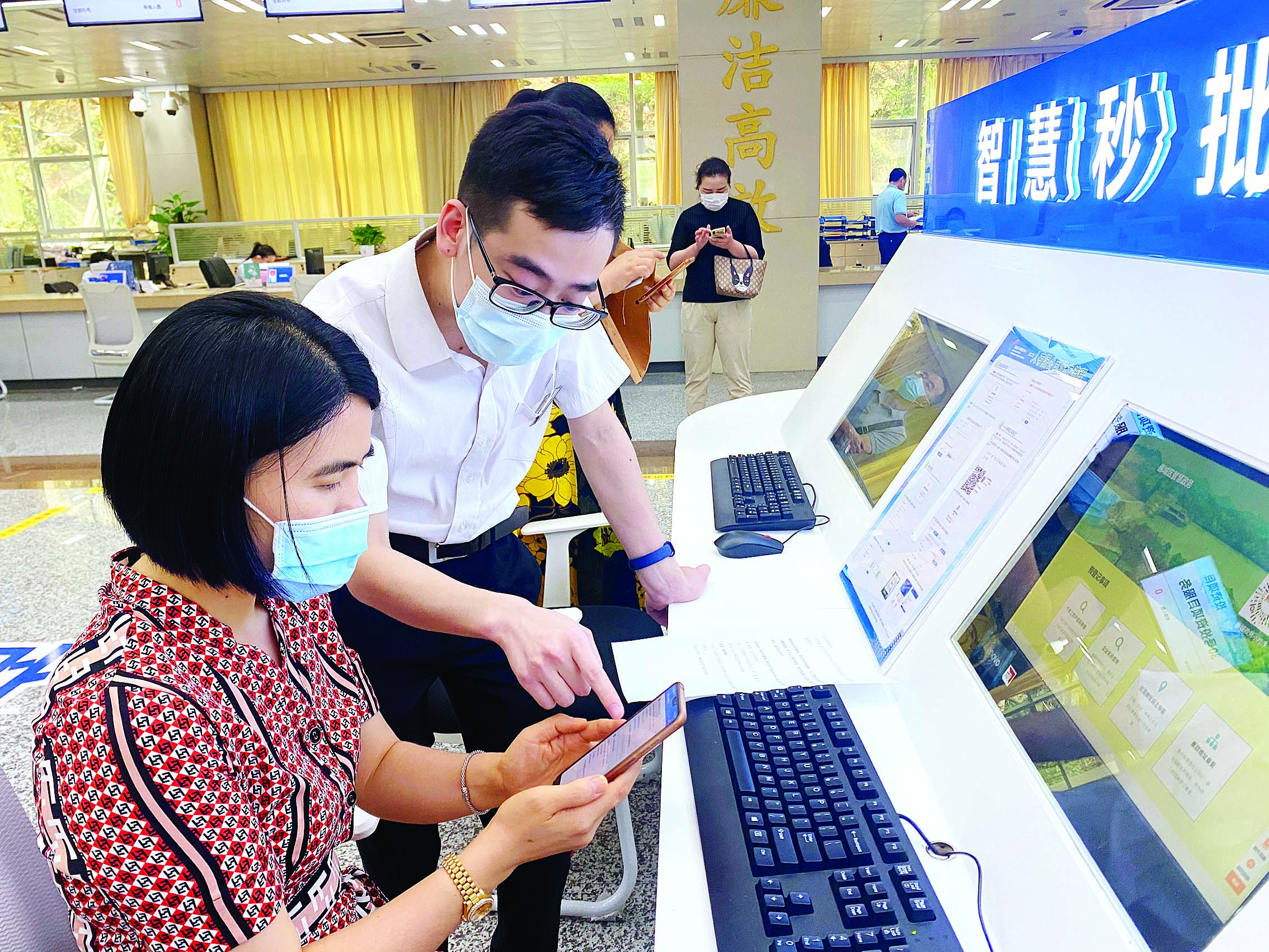 惠城區(qū)行政服務(wù)中心工作人員在指引群眾辦理業(yè)務(wù)。 惠州東江圖片社供圖