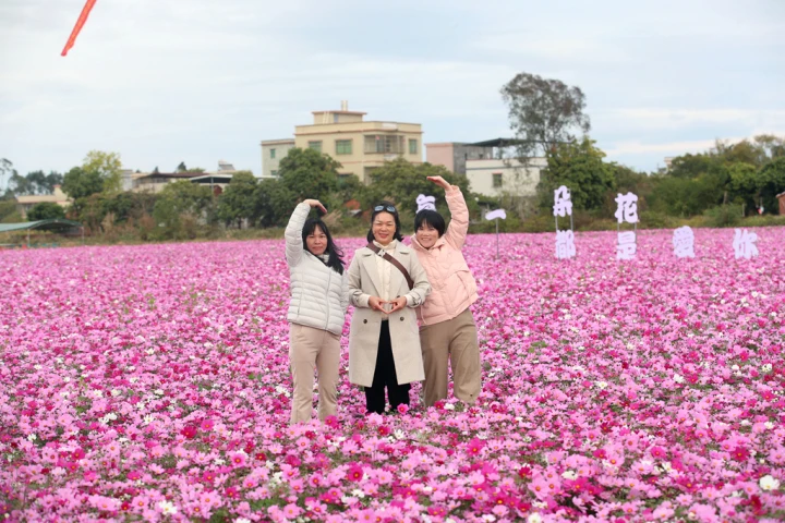 水口街道張村村好藝源生態(tài)園的格;ㄩ_得正盛,吸引眾多游客來打卡拍照。