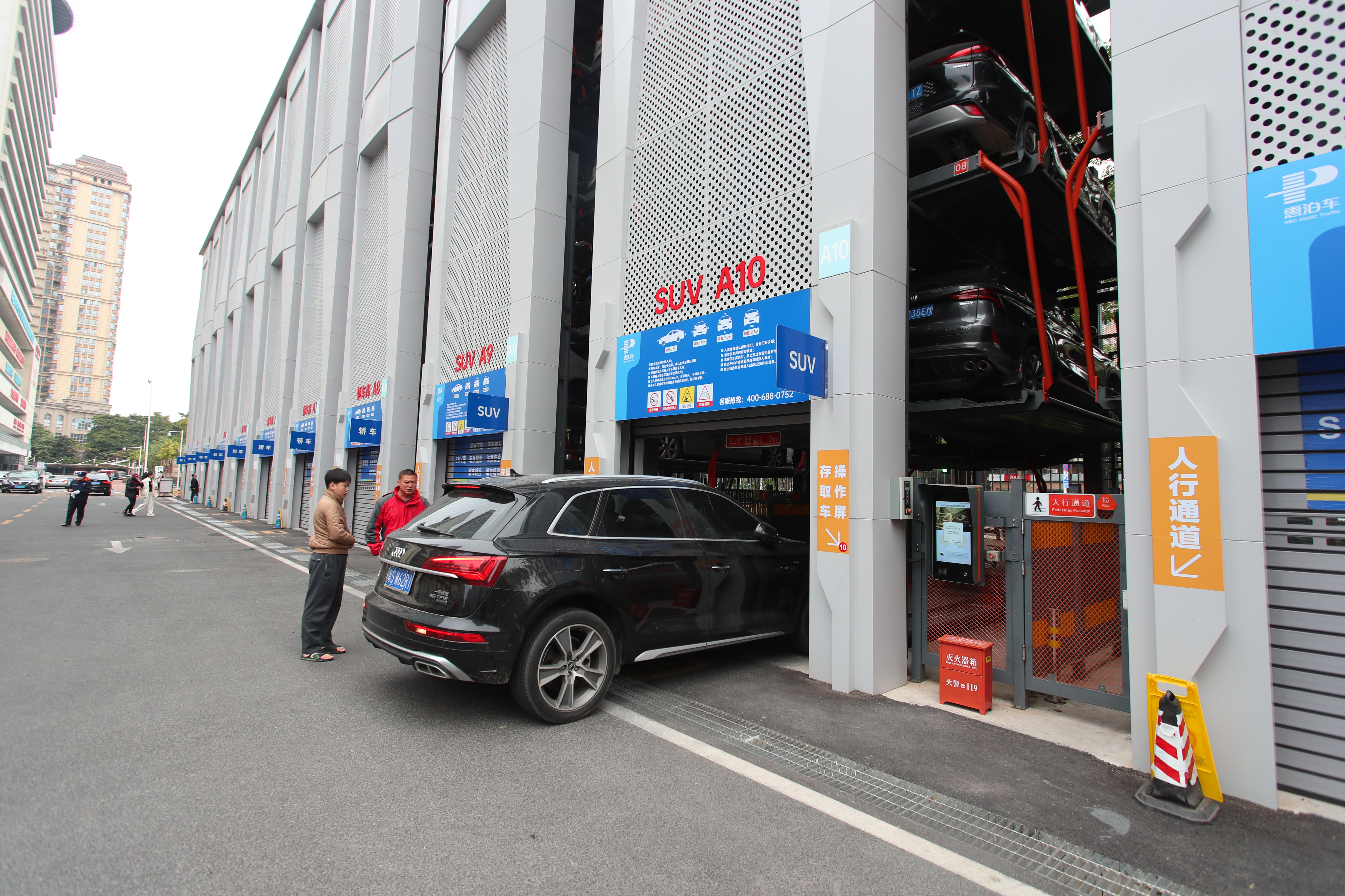 “您好,停車入口在前面左轉(zhuǎn)。”“車子停好后請記得拉手剎。”“這是機械式停車樓,取車時直接在電子屏幕輸入車牌號即可!薄凇盎莶窜嚒备魍\噲觯F(xiàn)場管理人員身著反光背心,手持對講機,忙碌地穿梭于車流之間。他們用規(guī)范的手勢和清晰的指令,引導(dǎo)車輛有序進(jìn)出,合理停放。面對車主的疑難困惑,工作人員耐心解答,熱情服務(wù),確保每一輛車都能快速找到停車位,避免擁堵。