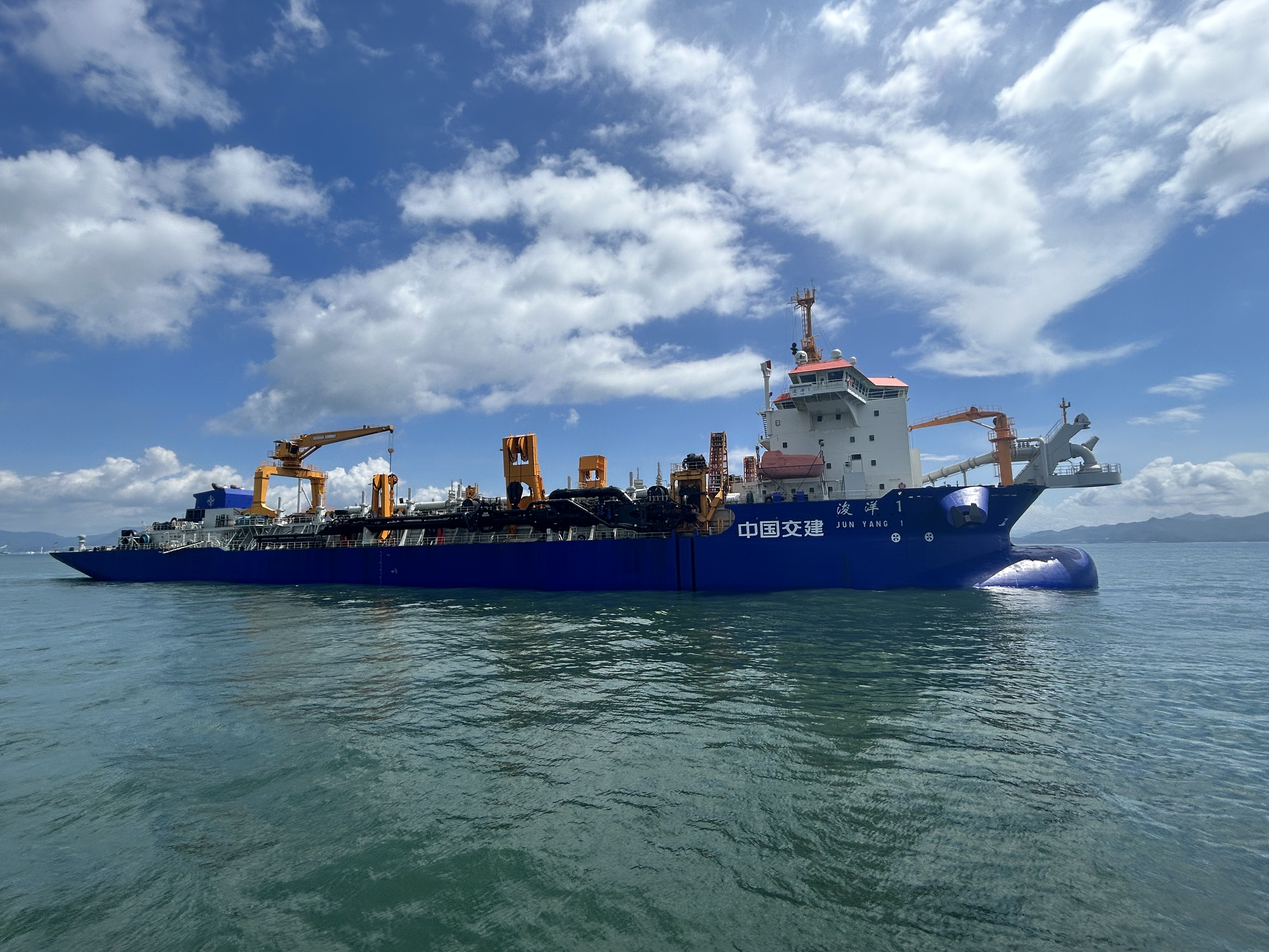亞洲最大自航耙吸挖泥船“浚洋1”在惠州港東聯(lián)作業(yè)區(qū)進(jìn)港航道施工。