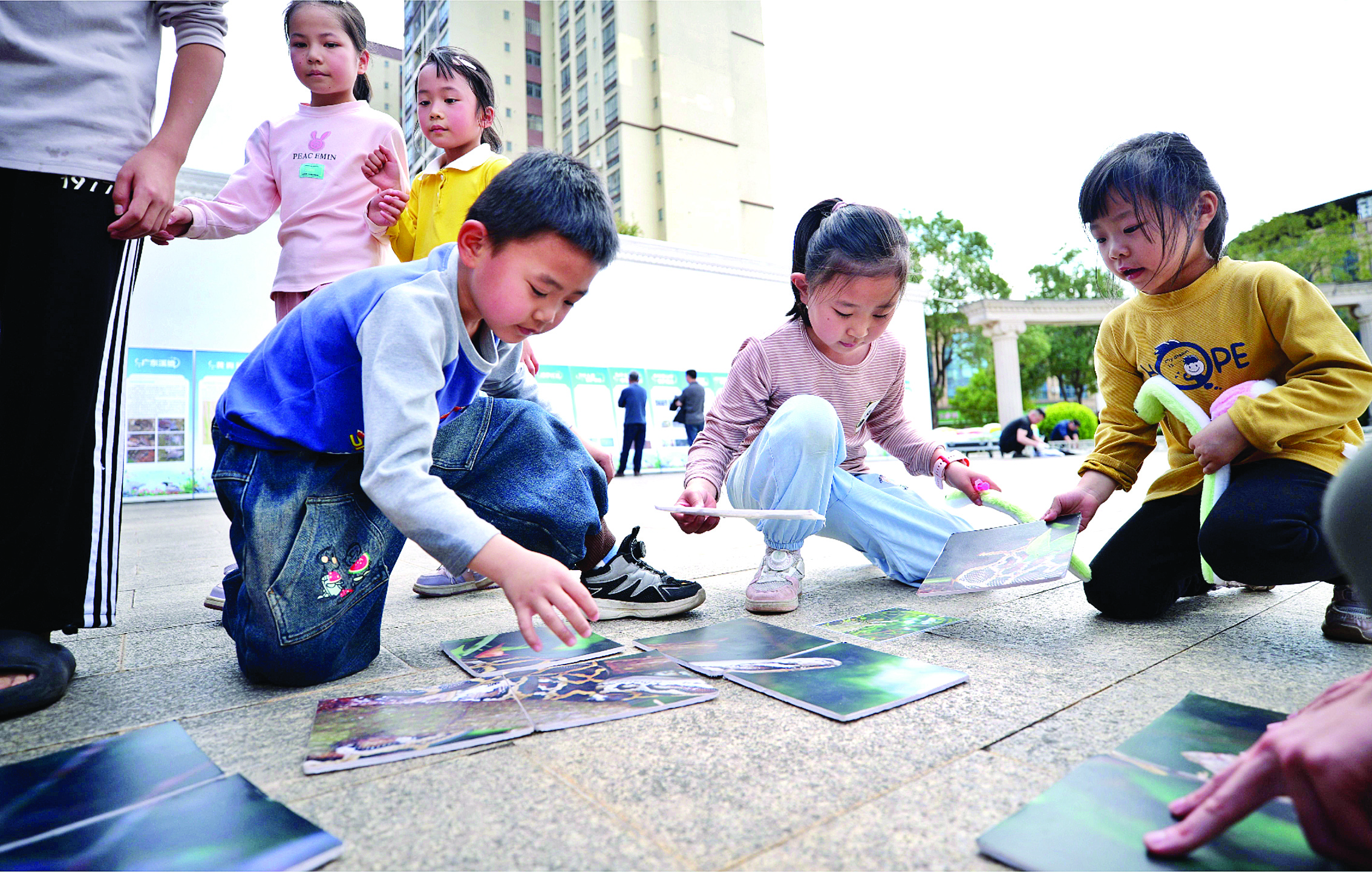 活動(dòng)現(xiàn)場(chǎng),小朋友們?cè)谕嬉吧鷦?dòng)植物的趣味拼圖;葜萑?qǐng)?bào)記者黃鑫威 周晨 攝