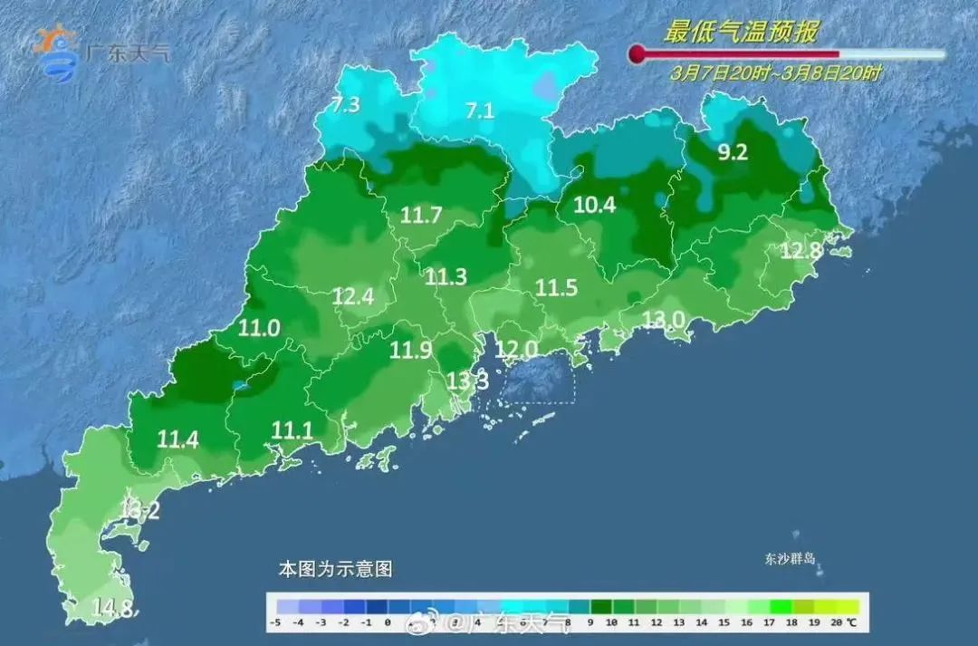 惠州市氣象臺(tái)3月8日11時(shí)發(fā)布一周天氣趨勢(shì),預(yù)計(jì),9-11日,多云為主,早晚有輕霧或霧,最低氣溫12~15℃,最高氣溫22~26℃,氣溫逐步回升;12-13日,多云到陰天,局部伴有小雨。