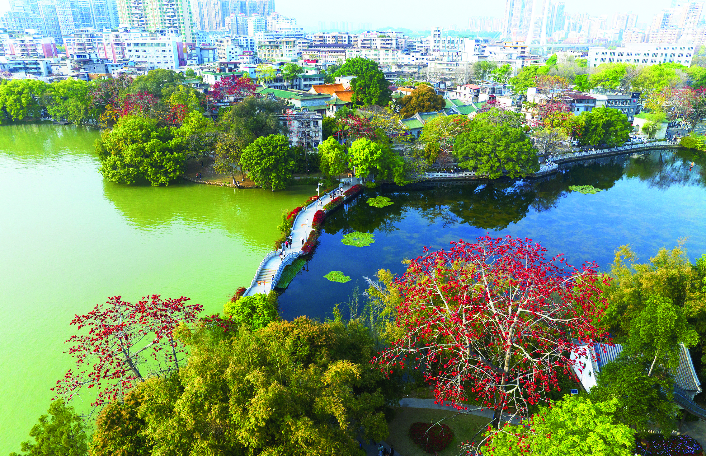 陽(yáng)春三月,惠州西湖邊上的木棉花競(jìng)相開(kāi)放,花紅似火,花瓣厚實(shí),像一盞盞紅玉雕成的酒杯,盛滿了春光,吸引各地游客觀光打卡。