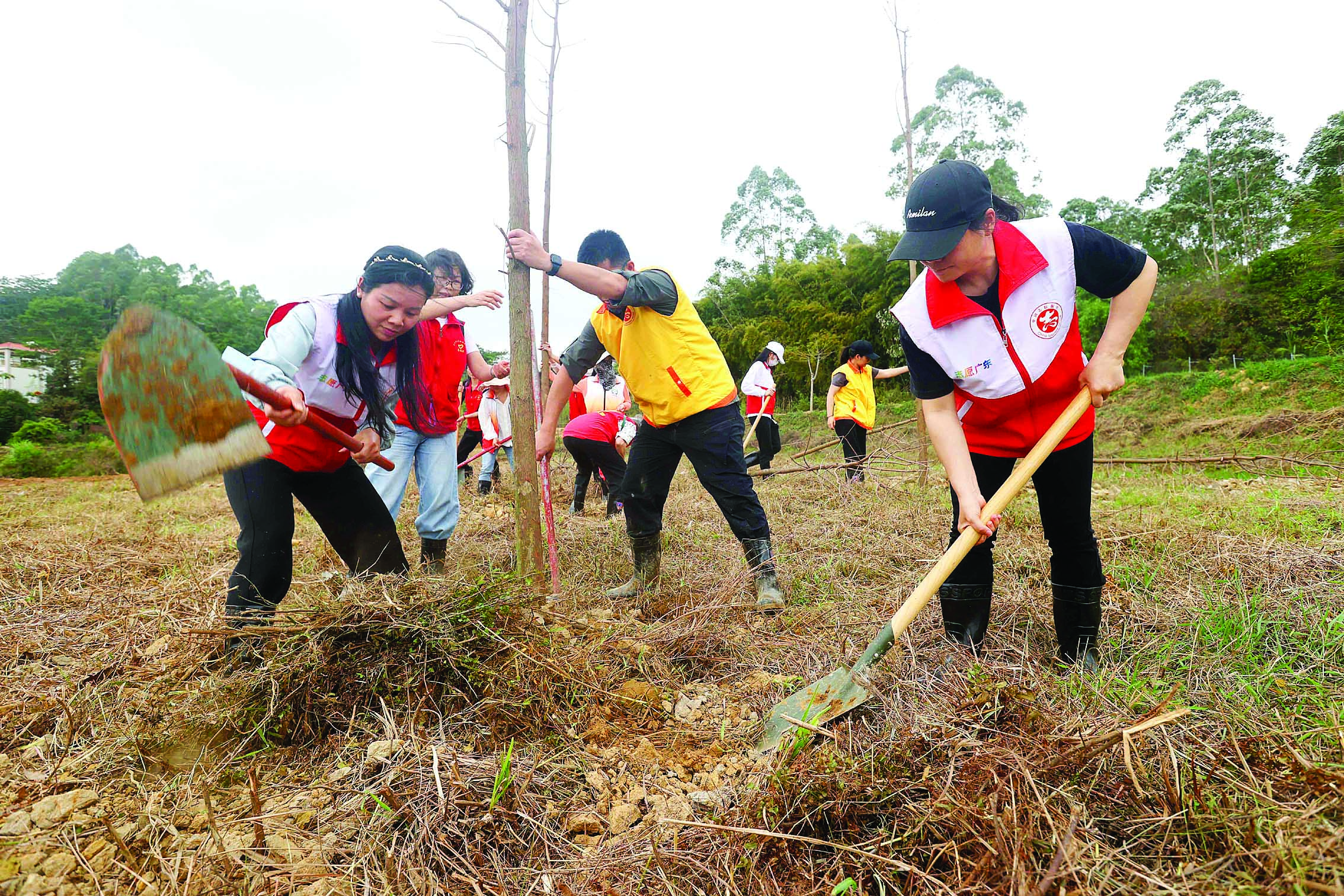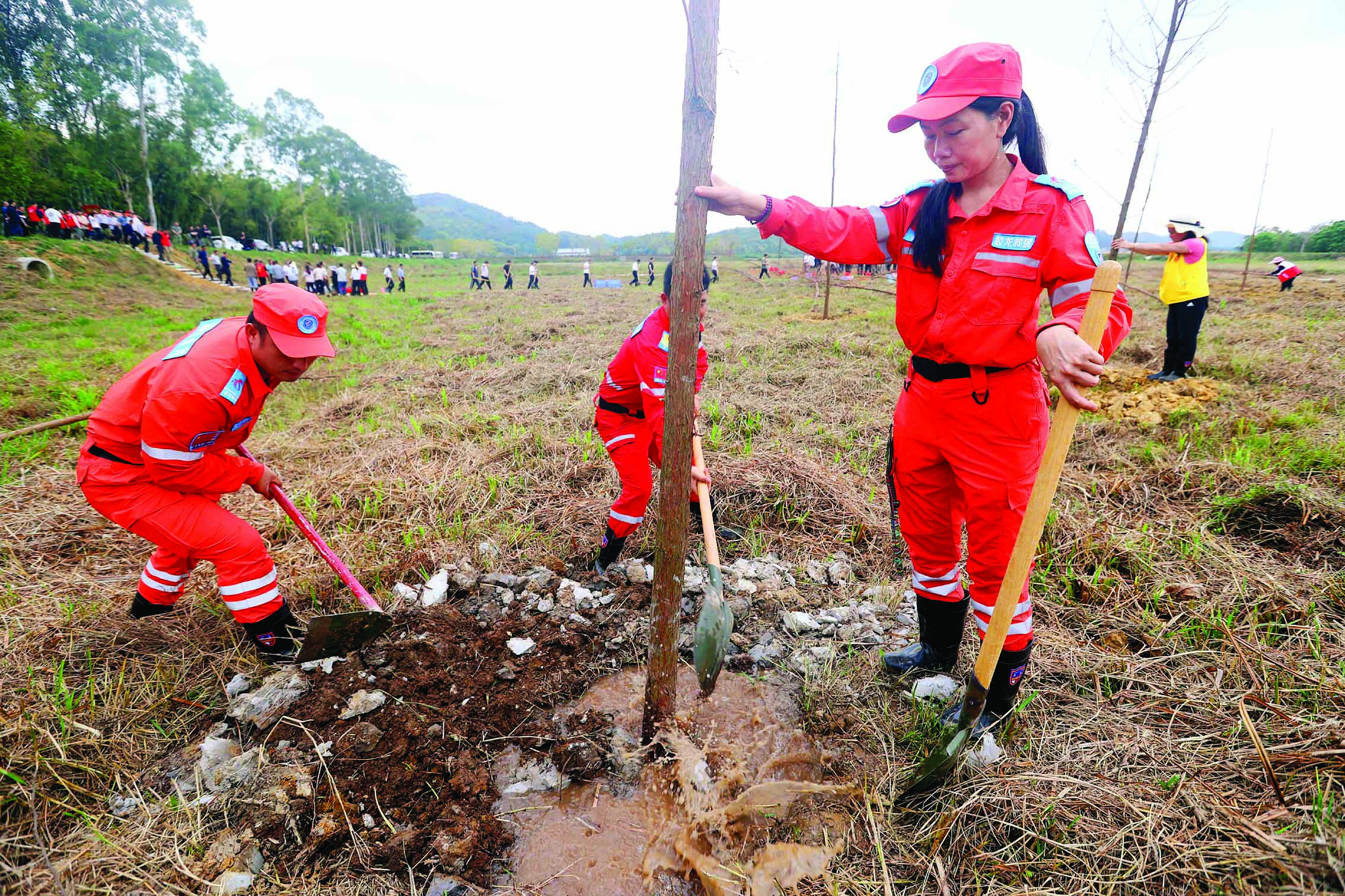 志愿者在植樹;葜萑請笥浾邨罱I(yè) 攝